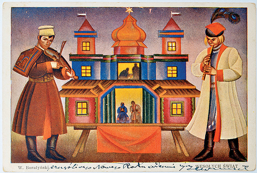 Trzej Królowie, Krakowiacy. Stroik ze świeczką, a w tle dymiące kominy. Okazuje się, że jak święta, to niekoniecznie stajenka.   Kiedyś więcej uwagi przywiązywano do słów, znaczenie też miało to, na czym i w jaki sposób je zapisywano. – Mam taką pocztówkę, na której przy okazji świątecznych życzeń opisano... lot aeroplanem – opowiada Marek Sosenko, krakowski antykwariusz i kolekcjoner. – Poza szczegółową relacją z uruchomienia samolotu, za którym b