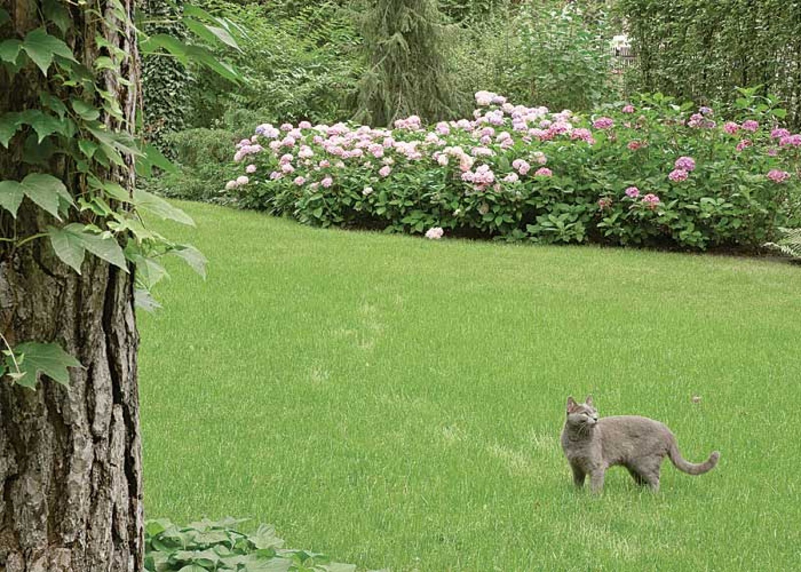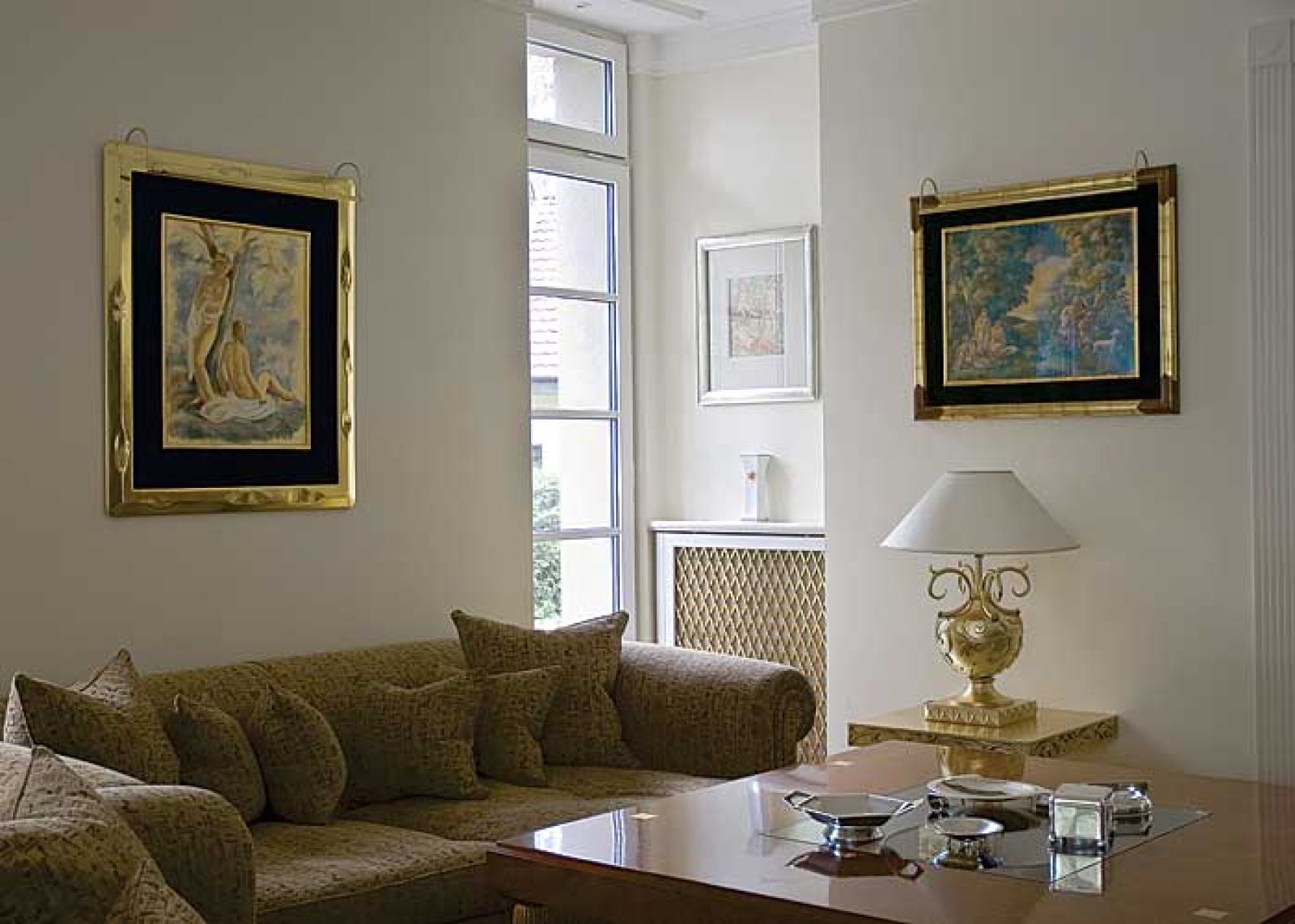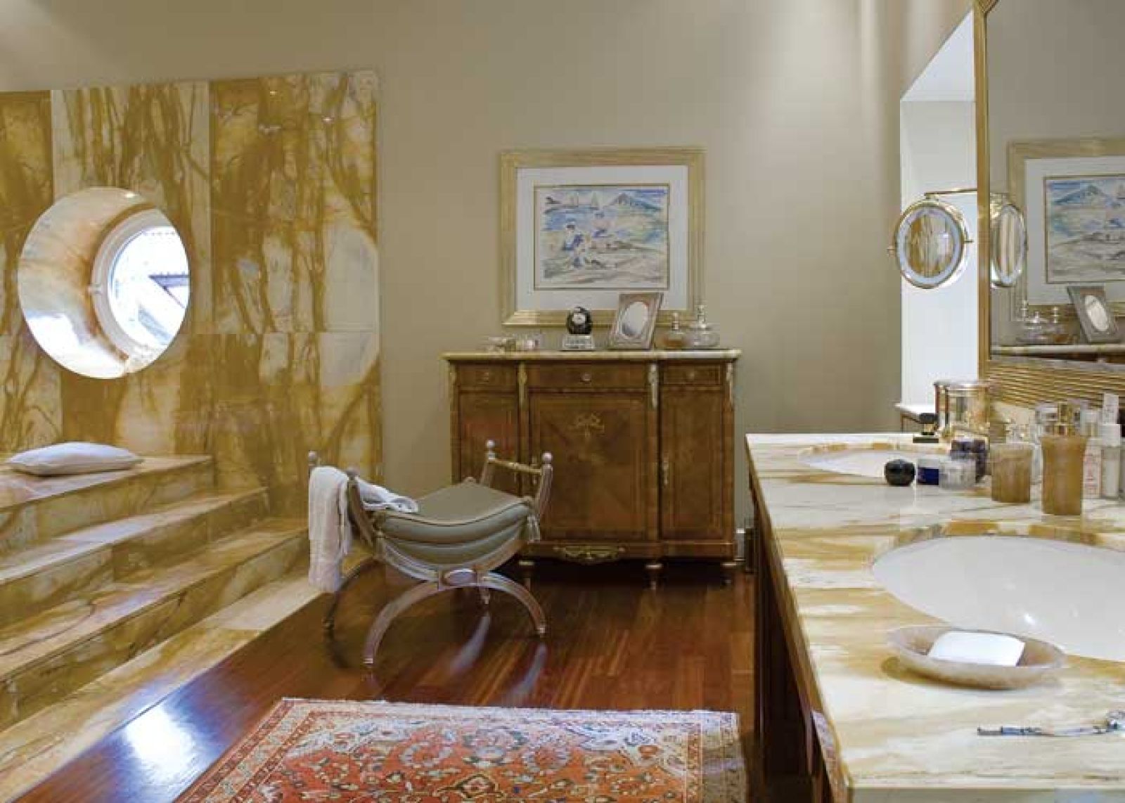 Stratos musiał go gruntownie przebudować. To dzięki niemu klockowata willa zyskała helleńskie, klasyczne proporcje z postmodernistycznymi akcentami. Na dole zaprojektował duże przeszklone pomieszczenia – salon z jadalnią, kuchnię, gabinet. Na górze oprócz sypialni i łazienek znalazło się miejsce na duży taras, z którego można podziwiać ogród. Nietypowy – kiedyś był tu las. Pełno w nim starych sosen, które oplata bluszcz i „kołnierzyki” z niecierpków.