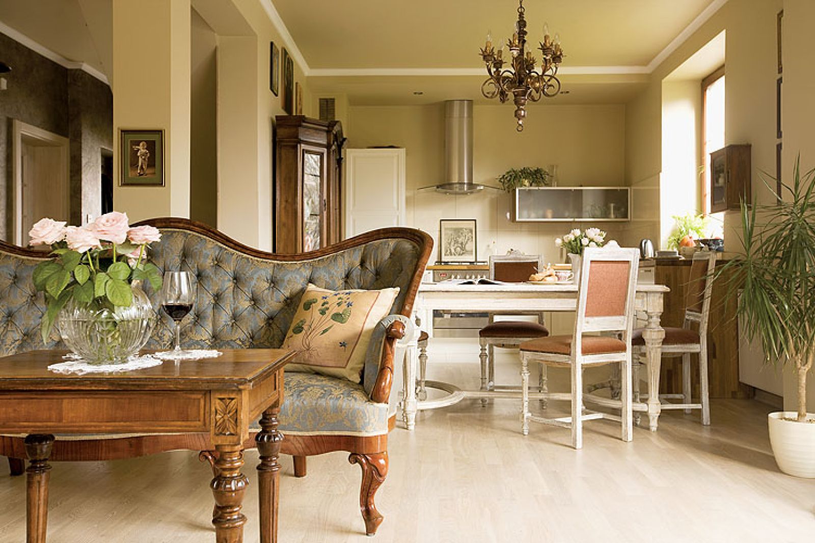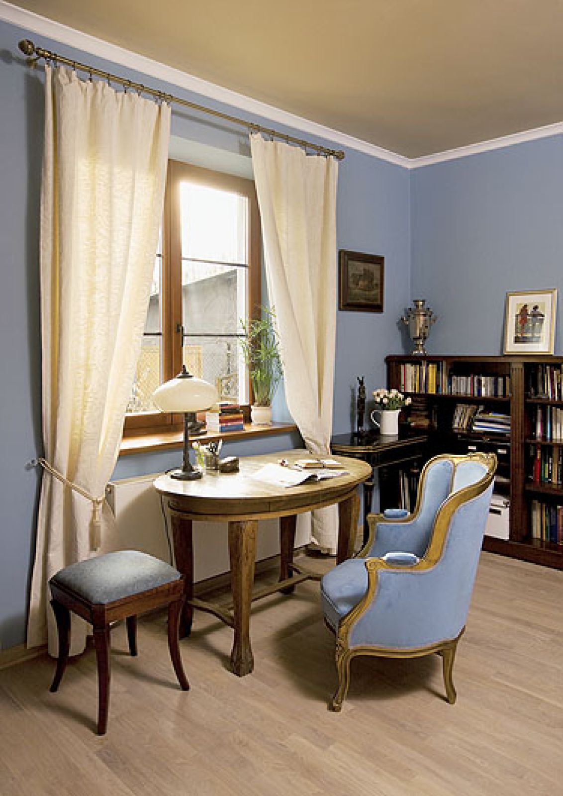 Tłem dla kolekcji miały być wnętrza w stylu francuskim: przytulne (stąd ciepłe kolory na ścianach przywołujące wspomnienie pól lawendy), ale przestronne, nieprzeładowane tkaninami (Paulina zastrzegła: żadnych zasłon i dywanów); z bielonym parkietem i wpuszczającymi dużo światła wielkimi czteroskrzydłowymi drzwiami. Tak, żeby liczne przedmioty nie narzucały się, ale i nie ginęły w tłumie. No i udało się. Na wszystkie pamiątki wystarczyło miejsca, a ścisku nie widać.