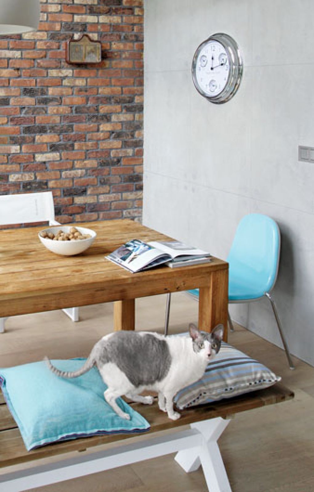 Gdy wchodzę, spod nóg śmiga mi srebrzystobłękitna puchata kula. To Lady, piękność rasy maine coon, bezszelestnie przemyka po podłodze i daje nura za kanapę w salonie. Nic dziwnego, jestem obca w kocim królestwie. Oczywiście to przypadek (a może znak), ale mieszkanie projektowała Agata Kotowska, sama też kociara. Poza tym, tak jak właścicielka Monika Kużelewska-Turczynowicz, pochodzi z Białegostoku i lubi lofty. Dogadały się więc idealnie.