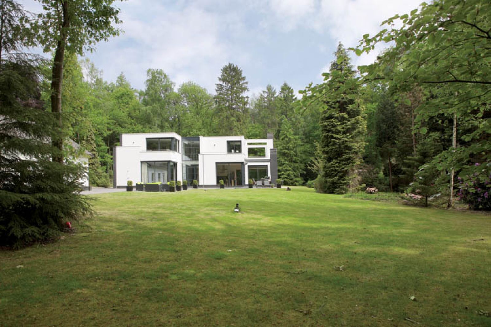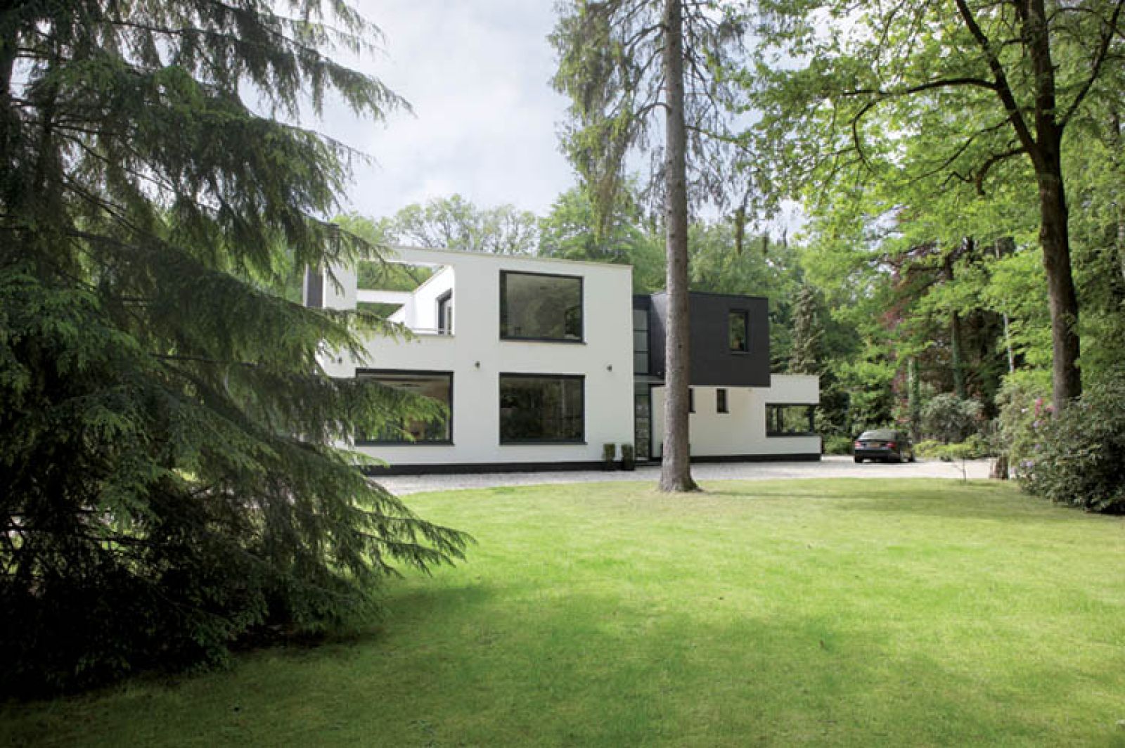 Najpierw suniemy szeroką żwirową alejką wzdłuż szpaleru rododendronów. Zapach tych kwitnących krzewów jest tak mocny, że aż dusi. Dopiero po chwili pojawia się równo przystrzyżony trawnik i oczom ukazują się biało-czarne kubiki. Stoją pod lasem i wyglądają jak dzieło awangardowego architekta z lat 30., tymczasem zaprojektował je... dentysta.