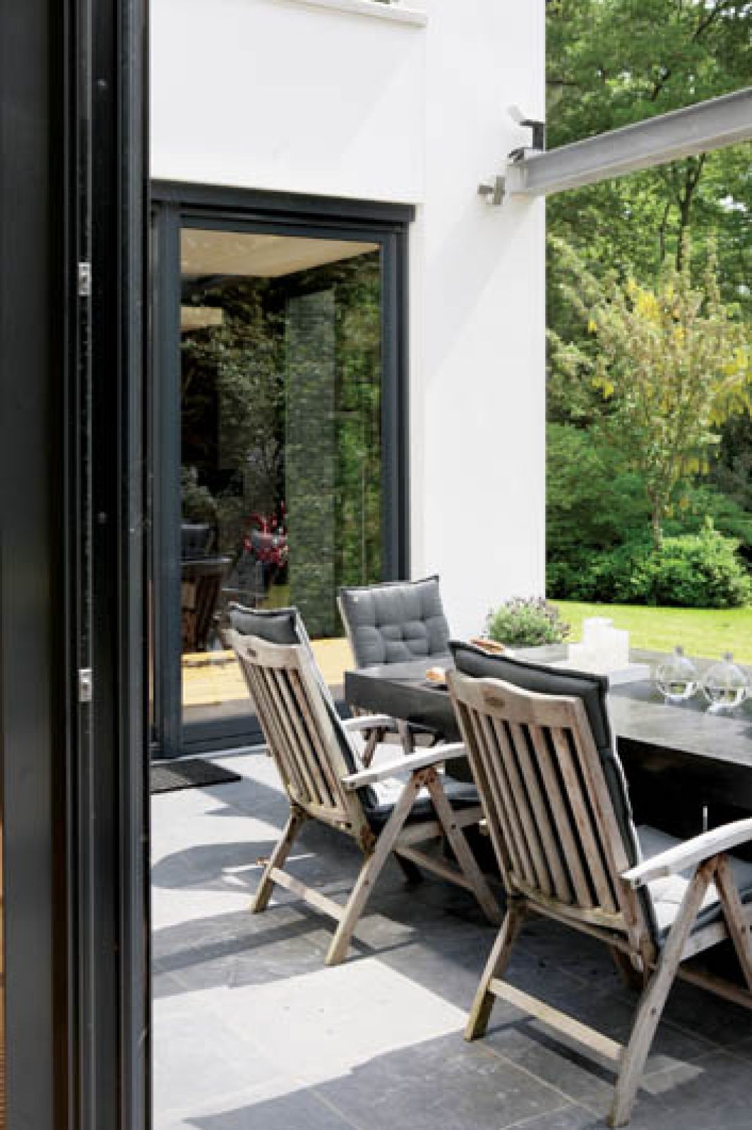 Od tamtego czasu rodzina się powiększyła, ale miejsca, którego tak potrzebowała Yvonne, wcale nie ubyło. Dom jakby był z gumy. Swobodnie pomieścił pokoje dla trójki dzieci (każde ma własną łazienkę), dodatkowy taras na górze (zacisze dla rodziców), a w końcu również saunę (marzenie Fransa, który studiował medycynę w Helsinkach i uzależnił się od tego fińskiego wynalazku).