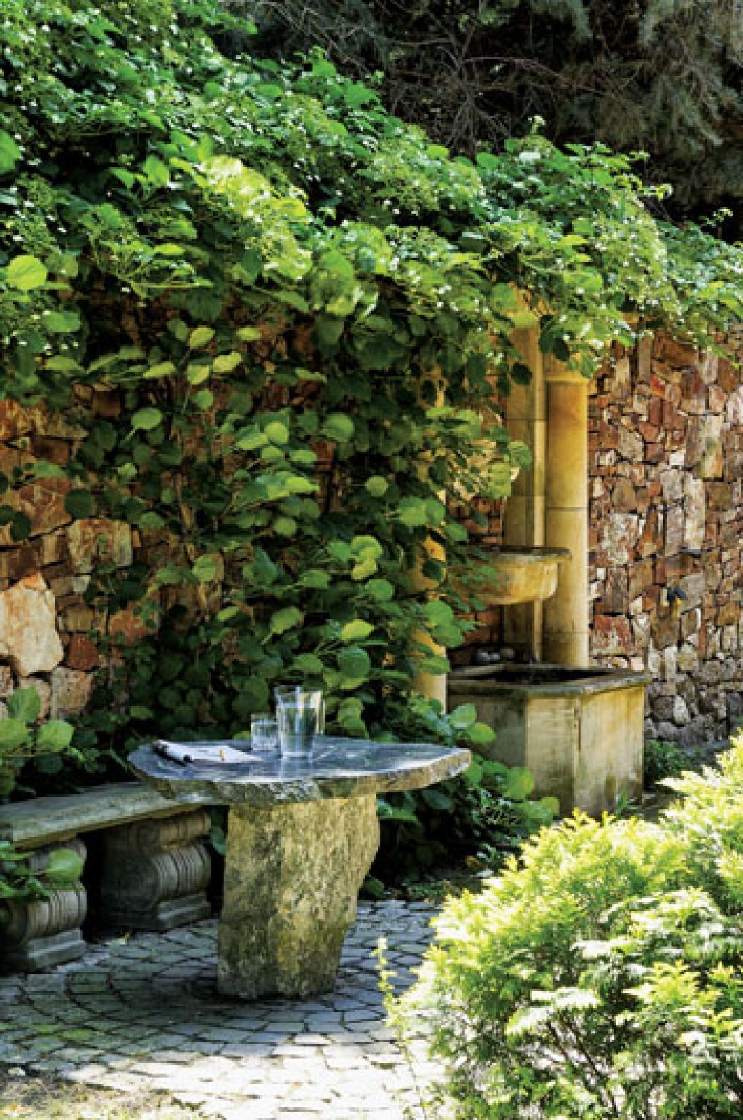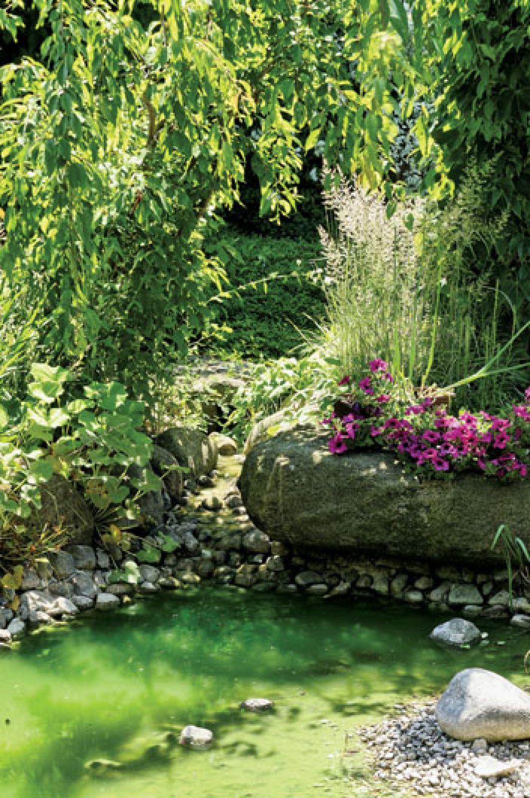 Ogród dyskretnie zdobią przedmioty zwożone latami z targów staroci. Pełno tu aniołów, szabel, a kamienny chłopczyk z rybą został przerobiony na fontannę. – Każda rzecz musi wrosnąć, znaleźć swoje miejsce – mówi gospodarz, pokazując stary strażacki hełm, który ptaki uznały za idealne miejsce na gniazdo.