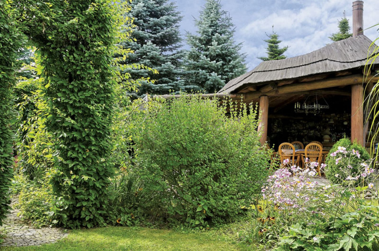 Kiedyś dzieciaki grały tu w piłkę. Dziś po murawie nie ma śladu, a dawne czasy przypomina metalowa bramka ukryta wśród drzew. Ten ogród powstał dzięki kilku pasjom – przede wszystkim do podróży, potem do gotowania, a w końcu do rzeczy starych.