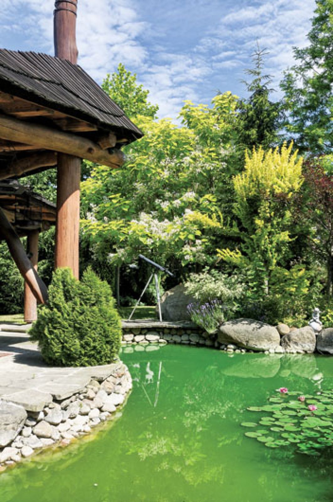 Od czasu do czasu pośród tych ogrodowych piękności roznoszą się smakowite zapachy. To znak, że gospodarz kucharzy właśnie w letnim pokoju nad stawikiem. – Mam tu pełną wolność! Można zadymić, przypiec, a nawet lekko przypalić i nikomu to nie przeszkadza – śmieje się.