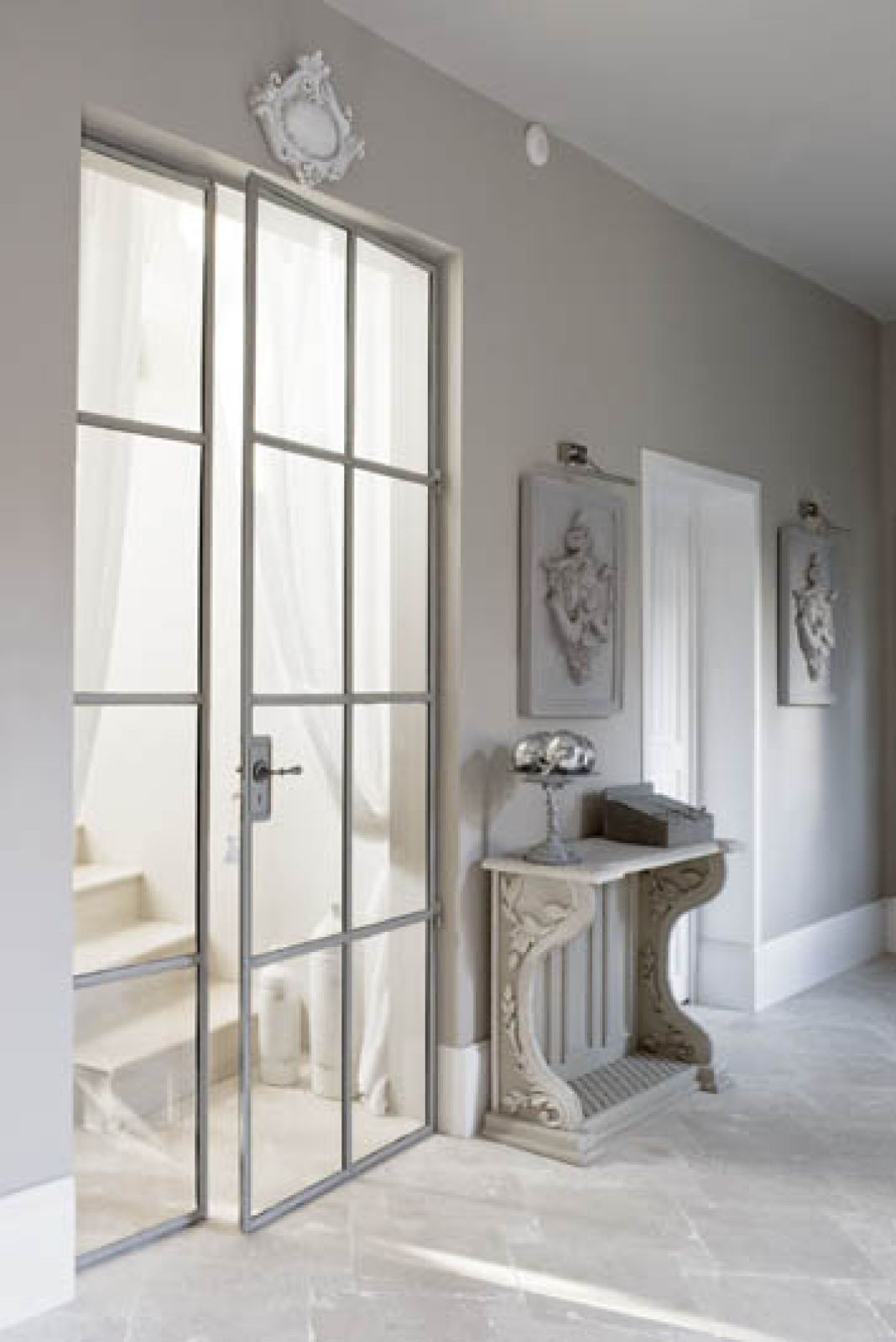 Kolory domu są szaroniebieskie, surowe i chłodne, ale rozświetlone i ocieplone tkaninami, drewnem i miękkimi kształtami. Brak przeładowania detalami, męski charakter wnętrza podkreślony czarnymi pasami, ciemnym marmurowym blatem, francuską metaloplastyką. Dorota jest szczególnie dumna ze szklanych drzwi. Zaprojektowała je sama w stylu flamandzkim i dała do zrobienia zaprzyjaźnionemu rzemieślnikowi. Mają ponad dwa i pół metra wysokości i robią fantastyczne wrażenie.