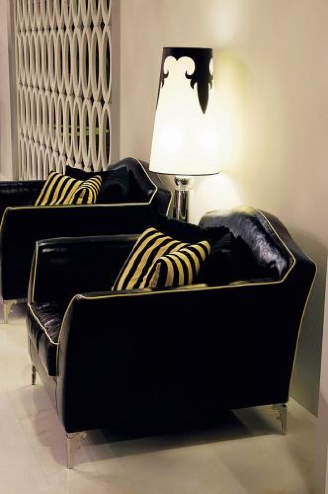 Jeśli już ma być gabinetowy fotel, to z nienaturalnie wysokim oparciem, a jak surowa w formie konsola – to pokryta mieniącą się złotą folią. Jeśli już znajdzie się miejsce na tradycyjny szezlong, musi być w nim ukryta niespodzianka – np. ekran na długim wysięgniku.