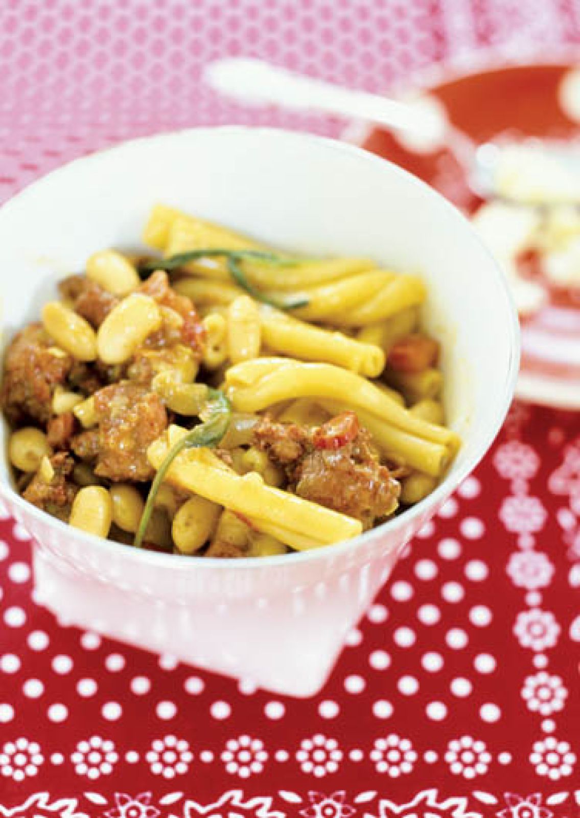 Makaron z białą kiełbasą