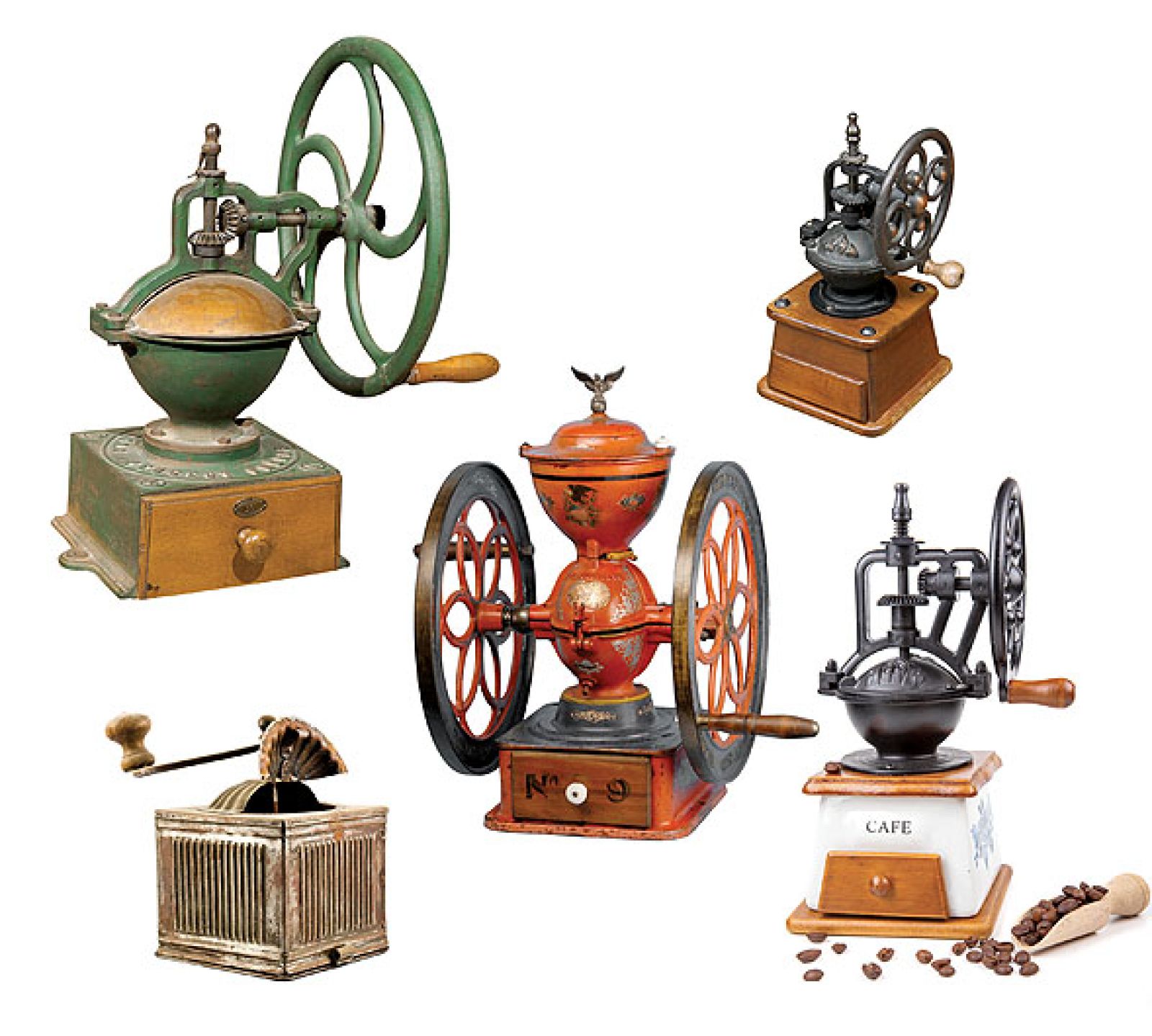 Kawa do Europy przybyła około 1600 roku. Gdy 20 lat później pielgrzymi na statku Mayflower wyruszali do Ameryki, zabrali drewniany moździerz. Jednak już w 1665 roku niejaki Nicholas Book z Londynu reklamował się, że jest „jedynym człowiekiem produkującym młynki do robienia proszku z kawy, które to sprzedaje za 40 szylingów sztuka”. Szybko podbiły rynek.