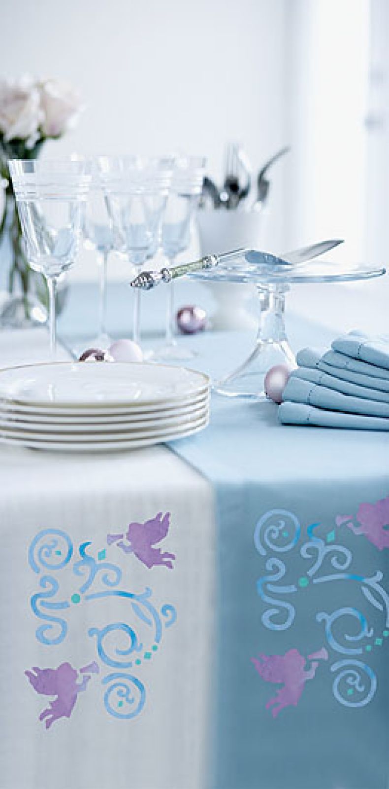 Możemy ozdobić nimi ścianę w salonie lub sypialni, ale niebiański ornament ładnie będzie wyglądał na świątecznym obrusie albo serwetach. A gdyby tak namalować go sztucznym śniegiem na szybie? Rozanielonych świąt!