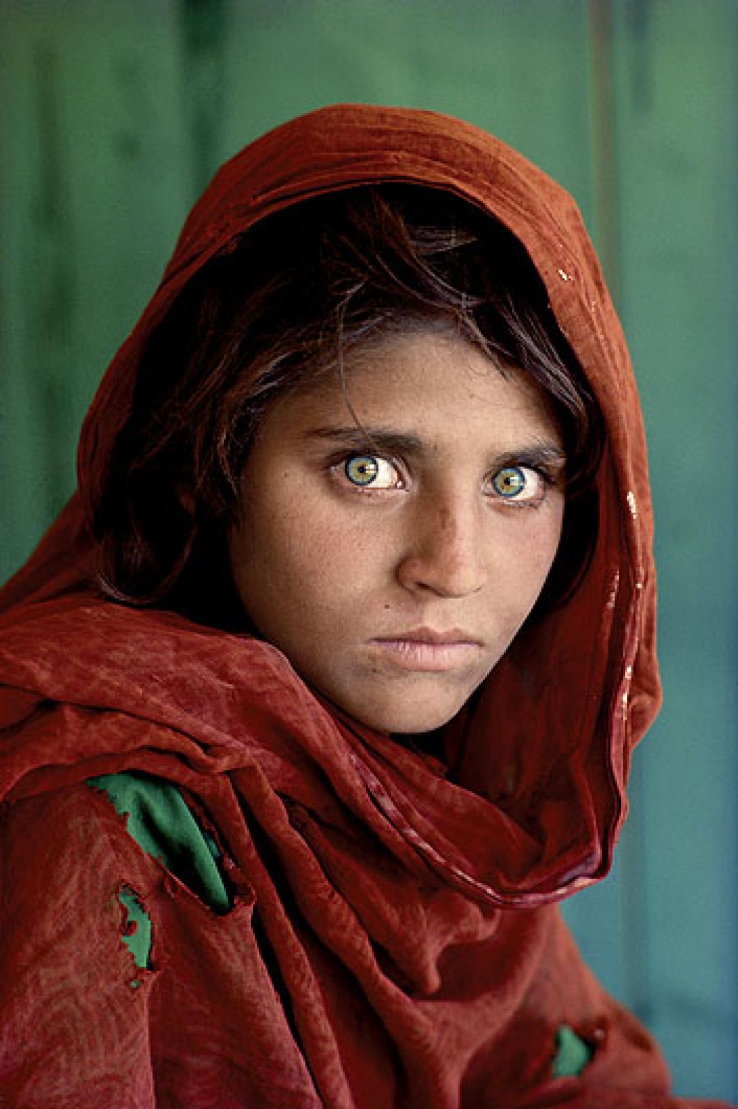 Nie tylko fotografie sławnych ludzi wchodzą do fotograficznego kanonu. Oto buzia anonimowej (wtedy) dwunastolatki, afgańskiej muzułmanki sfotografowanej w pakistańskim obozie dla uchodźców. Wielkie zielone oczy, wyrażające rozpacz i strach, uwiecznił Steve McCurry w 1984 roku. Rok potem zielonooka piękność trafiła na okładkę „National Geographic” jako „Afgańska dziewczyna”. Od tamtej pory portret stał się najlepiej rozpoznawalnym zdjęciem magazynu, jego znakiem firmowym. No i symbolem afgańskiego konfliktu, krwawo tłumionego przez Rosjan.
