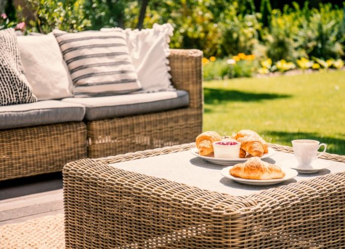 Wybierając meble zewnętrzne do ogrodu, trzeba zastanowić się, czy będziemy je każdorazowo chować do składziku lub domu, czy jednak zostawiać na zewnątrz niezależnie od tego czy pada deszcz czy leje się żar z nieba. Jeśli będziemy je chować, można postawić na inne materiały, np. eleganckie ogrodowe meble drewniane (które jednak wymagają pielęgnacji) lub metalowe krzesła kawiarniane, które inaczej zardzewieją (uwaga są dosyć ciężkie). Meble plastikowe i z technorattanu warto sprawić sobie jako zestawy wypoczynkowe na taras. Szczególnie te drugie są najpopularniejsze, bo nie odbarwiają się i są odporne na wszelkie niesprzyjające warunki pogodowe.