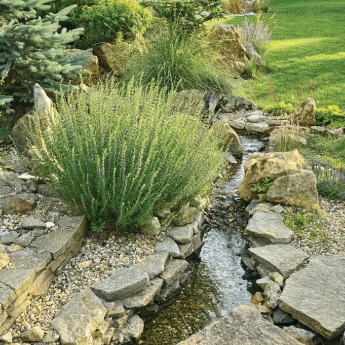 Wokół oczka wodnego, do strefy nadbrzeżnej nadadzą się pałki wodne, trawy ozdobne, bergenia sercowata i liliowiec rdzawy, do strefy bagiennej – babka wodna, płytkiej – kosaciec żółty, a głębokiej – lilia wodna. Warto postawić na rośliny oczyszczające wodę, takie jak hiacynt wodny i rogatek sztywny.