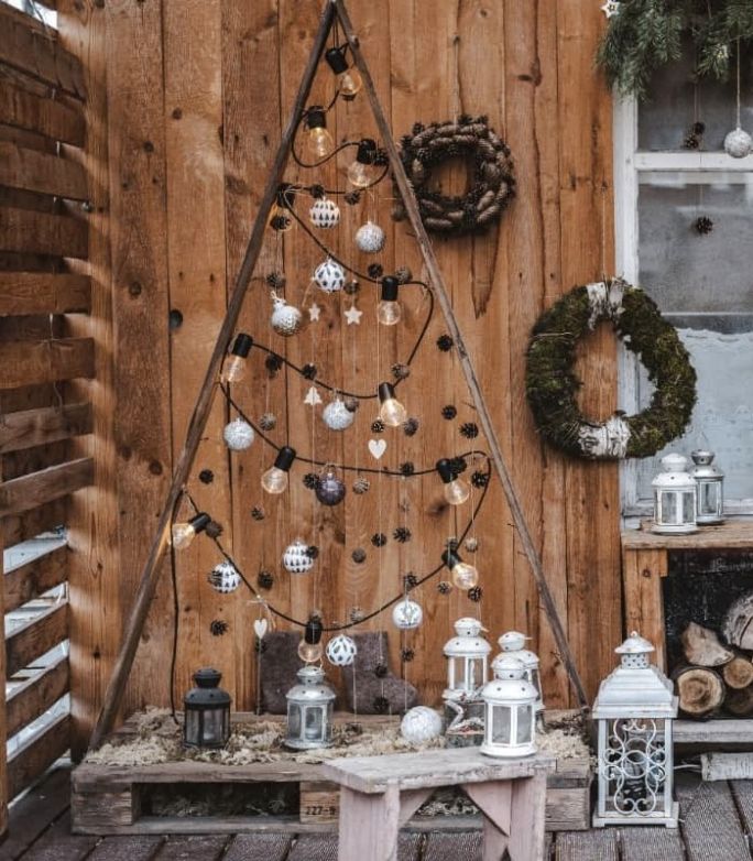Wiele nie potrzeba. Już sama zimowa sceneria jest efektowna. Uzupełnijmy ją meblami ogrodowymi, oświetleniem, przytulnymi dodatkami. Na przykład choinką wzniesioną z żerdzi. Wystarczy zbić ją z kilku drewienek i wypełnić ozdobami. W okresie świąt mogą to być bombki zawieszone na drucikach, a potem możesz opleść ją sznurem światełek, wypełnić gałązkami, wiszącymi roślinami w doniczkach... Świetnie się sprawdzi jako karmnik dla ptaków, wystarczy zawiesić na niej budki z ziarenkami i wodą. Taką zimową dekoracją są także wieńce z iglaków – ozdobione w zależności od pory roku – kulkami ostrokrzewu, jemiołą czy bukszpanem.