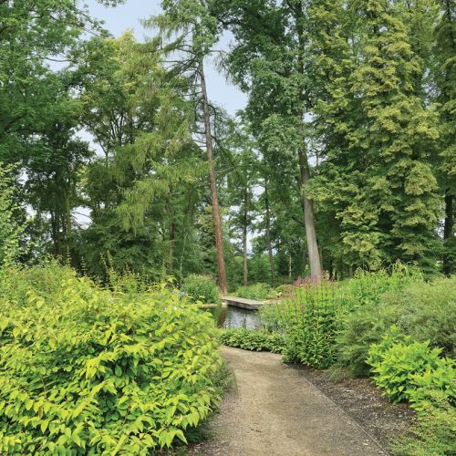 Zapadła też decyzja, żeby odtworzyć staw, po którym została jedynie wyschnięta, zarośnięta niecka. Znów pomogły stare zdjęcia. Zmieniono lekko jego kształt i wielkość, obsadzono nowymi roślinami. Z dawnych czasów pozostał tak zwany zrosłodrzew. To posadzone blisko siebie drzewa, które rosnąc, malowniczo się odchylają.