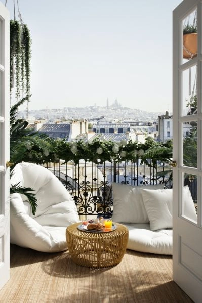Do bardzo popularnych należą odporne na deszcz i śnieg meble z technorattanu. Lubią je zwłaszcza właściciele nowoczesnych kącików do relaksu na tarasie oraz minimalistycznych z założenia ogrodów japońskich. Odwrotnie niż posiadacze małych balkonów, gdzie fotel czy kanapa z modnego rattanu zabierają zbyt dużo miejsca – oni mają do wyboru wygodne pufy, grube poduchy czy hamakowe krzesła. Ciekawym pomysłem, w dodatku niskobudżetowym, są proste palety czy drewniane skrzynki – mogą służyć jako pojemniki na jabłka, a gdy zjemy ostatni owoc, będziemy mogli je odwrócić i na chwilę na nich przysiąść. Połóżmy na nich koce i poduchy, a przytulny kącik do relaksu gotowy.