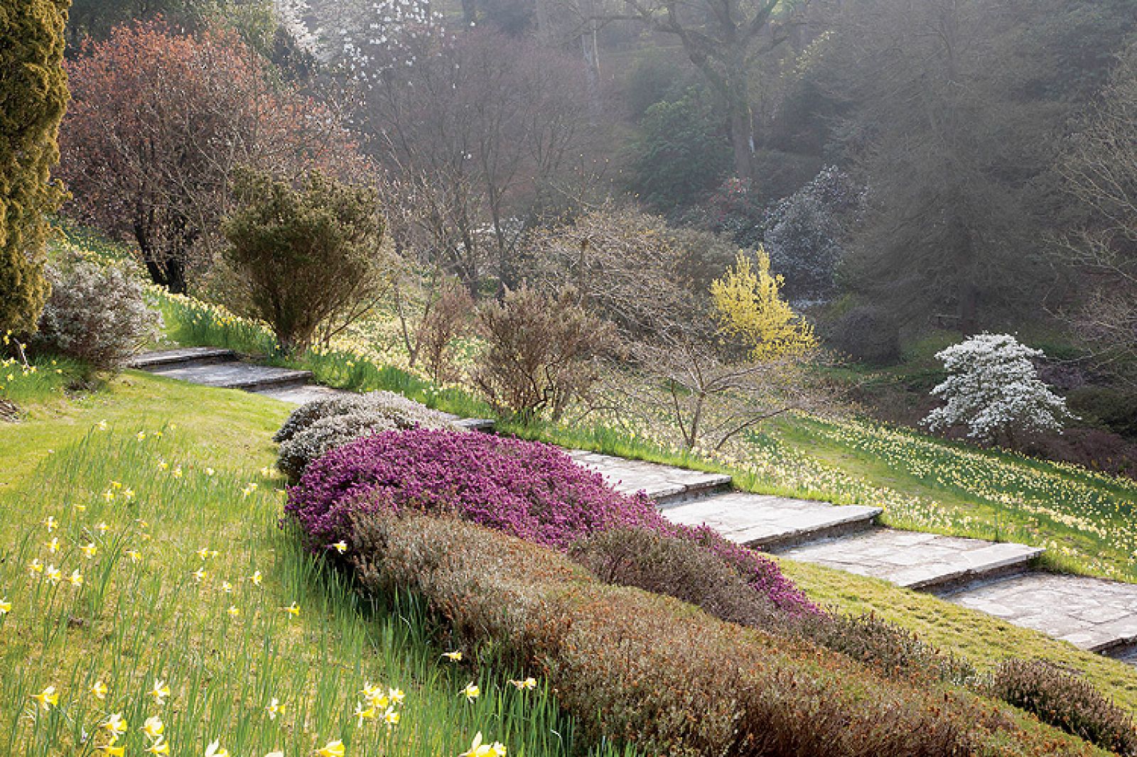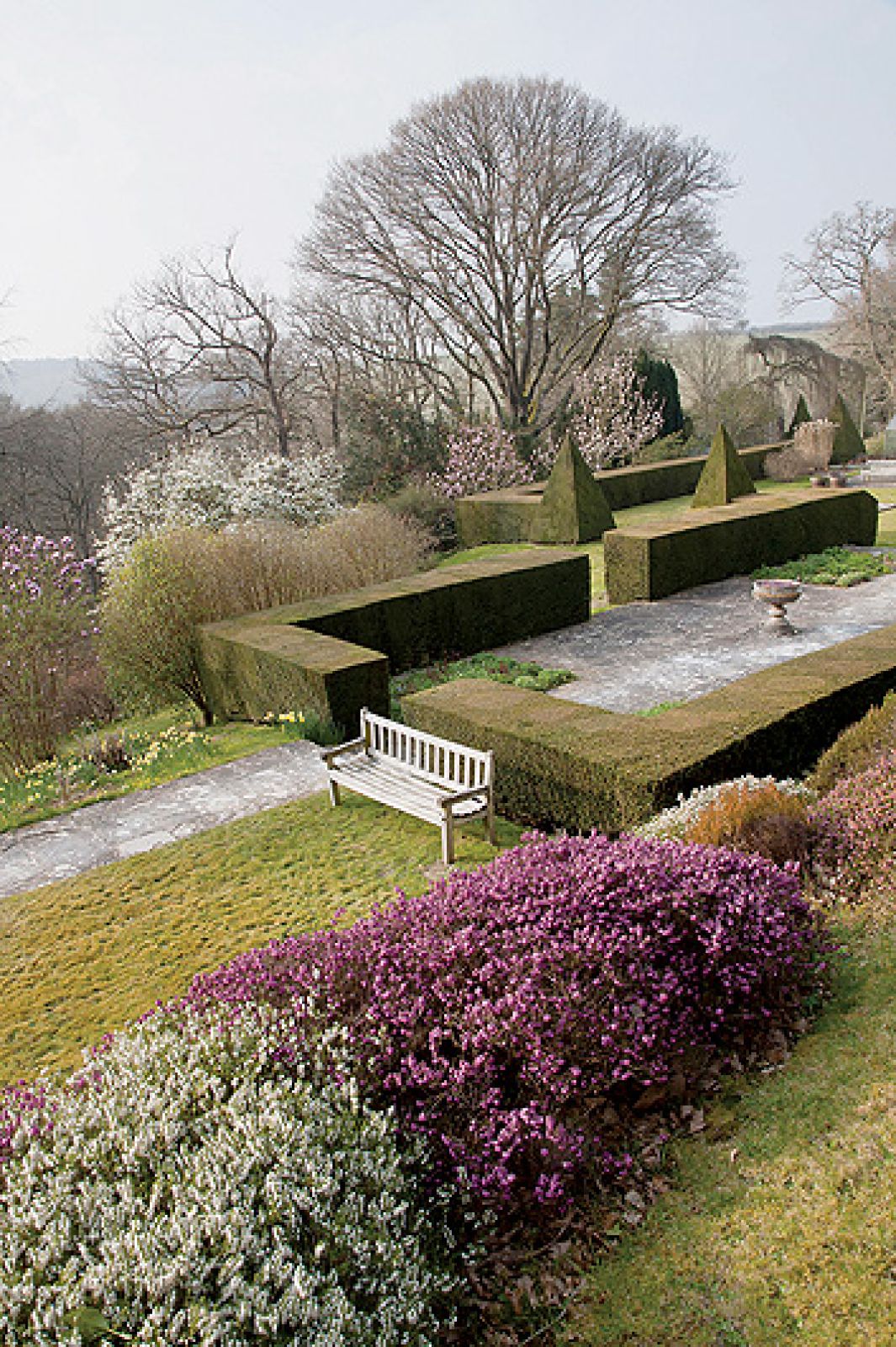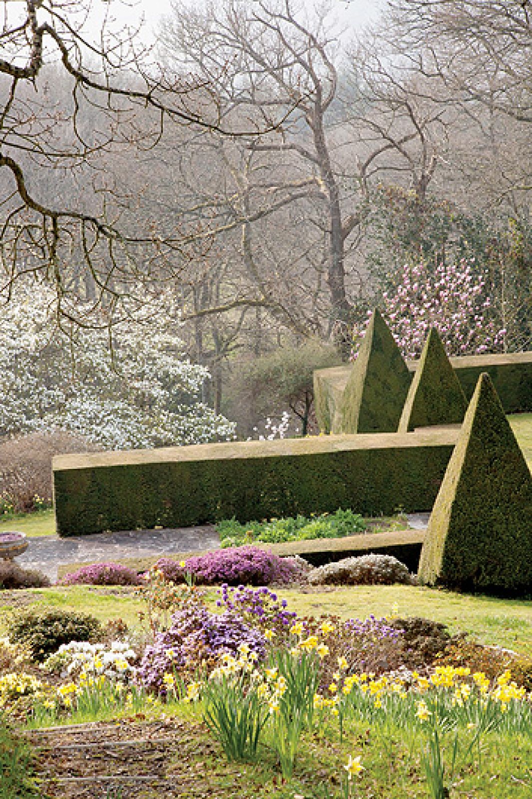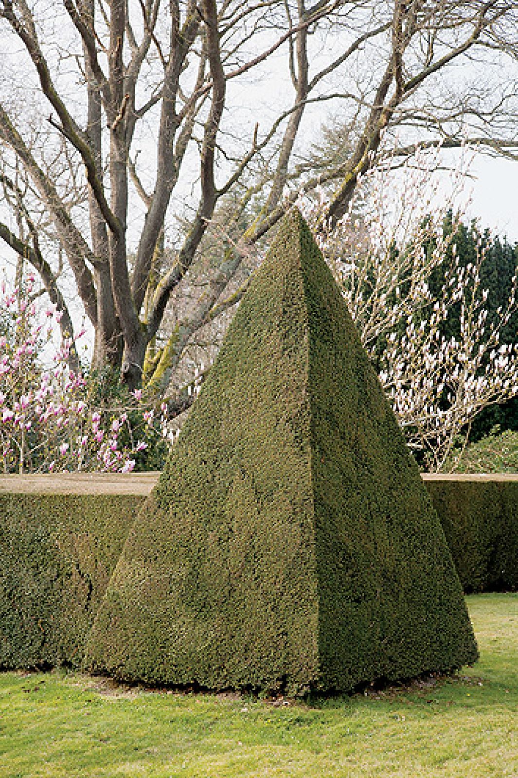 Zgodnie z brytyjską tradycją zieleń naturalnie przechodzi w krajobraz. Ogród otoczony jest żywopłotem – posadzonym przez poprzednich właścicieli w 1907 roku – który chroni go przed sarnami. Cisowe piramidy to nawiązanie do stylu Arts and Crafts.