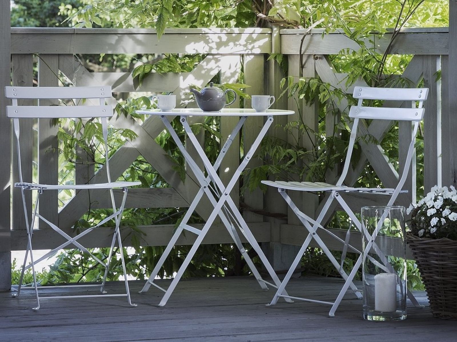 Najlepiej, by stolik był też składany. Jeśli mamy tak mały balkon, że istnieje tylko alternatywa – albo stolik albo drugie krzesło – potrzebny będzie stolik ze składanym blatem, żeby taki mebel łatwo złożyć i oprzeć o ścianę czy balustradę, kiedy nie jest używany.