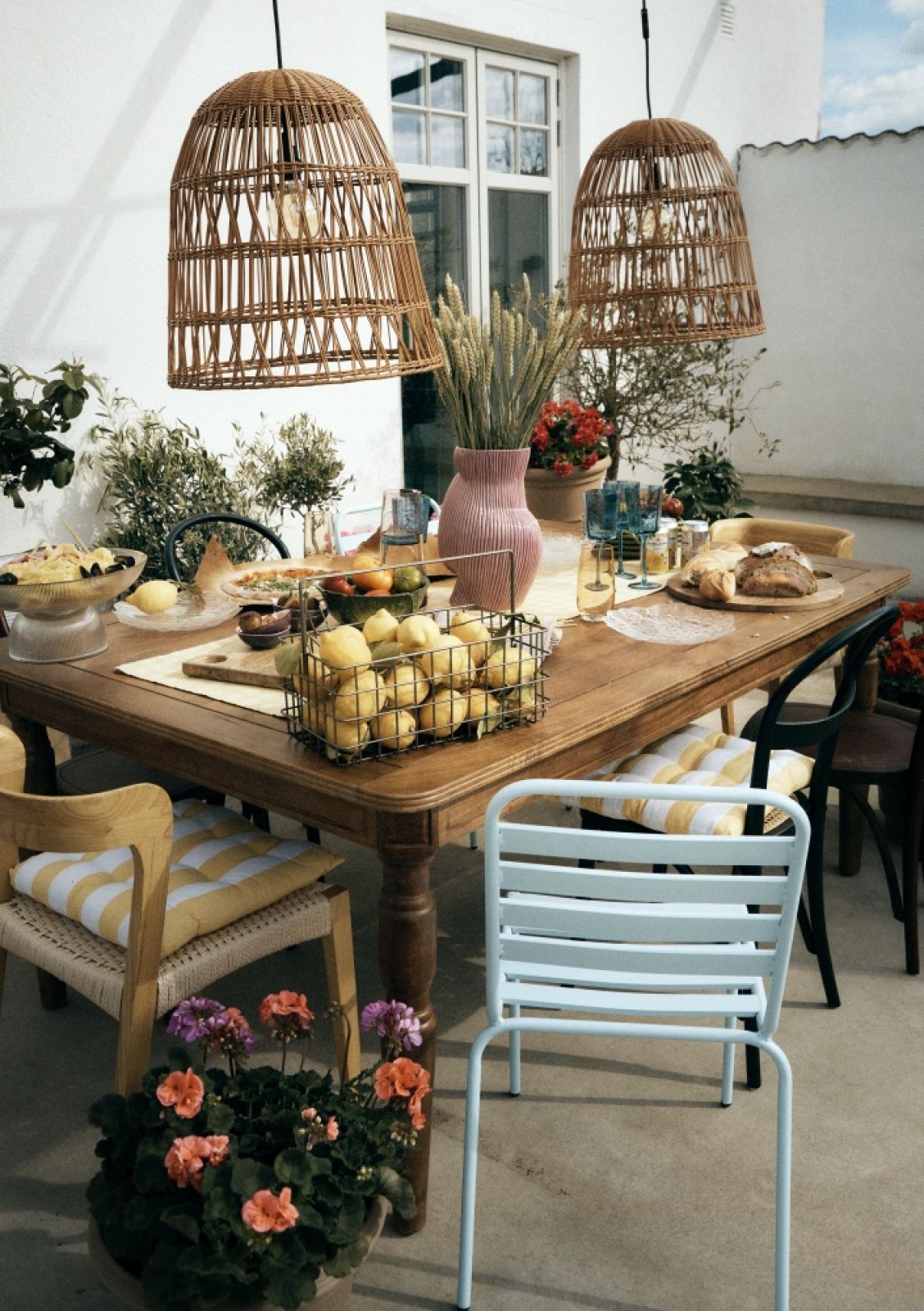 Wiklina pięknie ozdobi miejsce do spożywania posiłków w twoim ogrodzie. O lekkie ażurowe meble z bambusa trzeba dbać – nie zostawiać na deszczu, ani na dużym wietrze (są delikatne i mało stabilne), za to pięknie wyglądają, zwłaszcza gdy chcesz zaaranżować taras czy balkon w skandynawskim stylu.