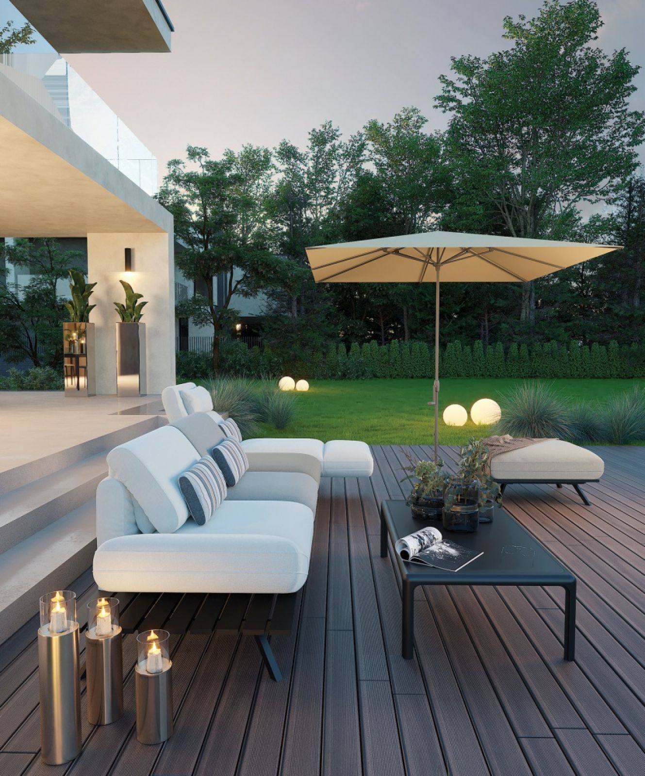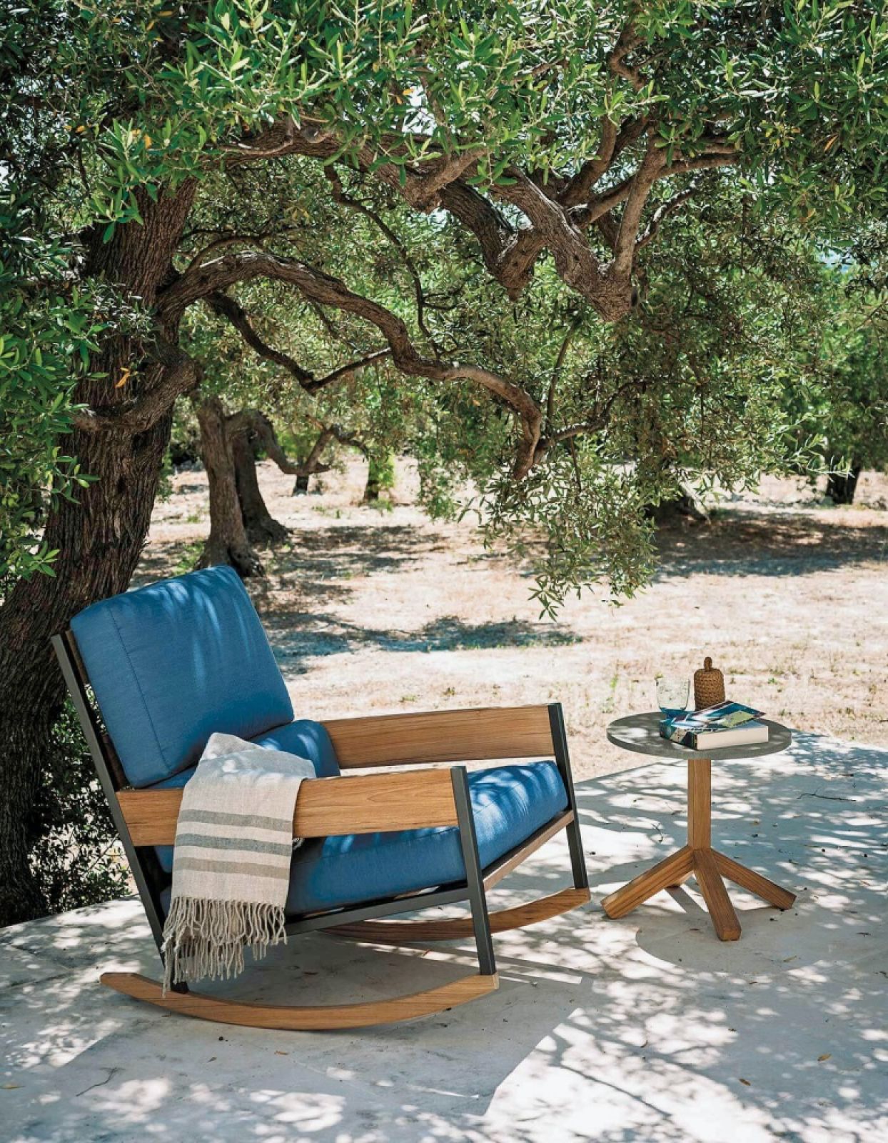 Jeśli dysponujesz zadaszonym tarasem (z markizą, która automatycznie rozkłada się kiedy zaczyna padać), albo możesz postawić meble w ogrodzie pod namiotem czy w altanie – wtedy możesz pokusić się o zestaw mebli z naturalnych materiałów (zamiast technorattanowych czy aluminiowych). Ponadczasowe drewno odpowiednio zabezpieczone ładnie się starzeje i zawsze wygląda stylowo.