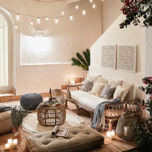 Nie potrzebujesz już ciągnąć kabli, aby oświetlić ogrodowy stół. Solarne kule wystarczy podwiesić na lince albo… na gałęzi drzewa. Nastrojowe światło dają też girlandy. Możesz poprzeplatać je wokół pergoli albo włożyć do szklanych słojów i ustawić na tarasowych schodach. Niektóre mają dekoracyjne, np. rattanowe abażury. Można też wybrać odpowiednią długość i kształt żarówki. Ciekawie wyglądają również łańcuchy LED do ogrodu – owinięte np. wokół belki na werandzie – przypominają świecące wiązki.
