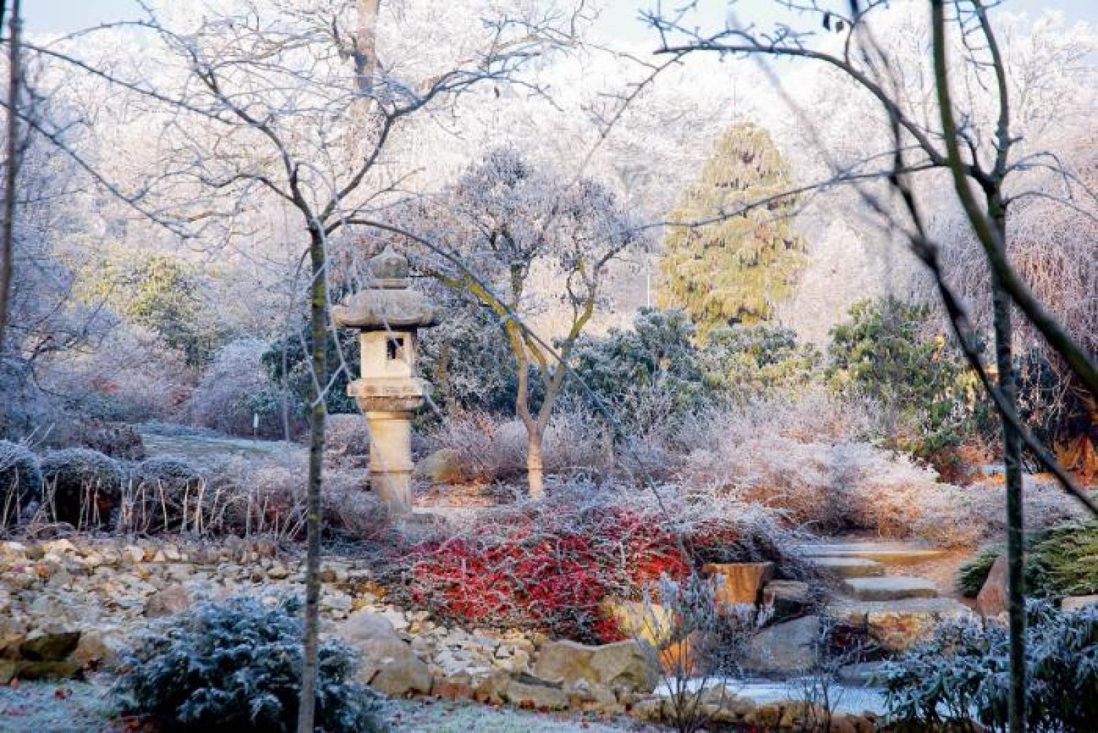 W tym ogrodzie najpiękniej jest zimą, gdy tęgie mrozy, szadź i szron zamieniają nagie drzewa i krzewy w prawdziwe klejnoty.