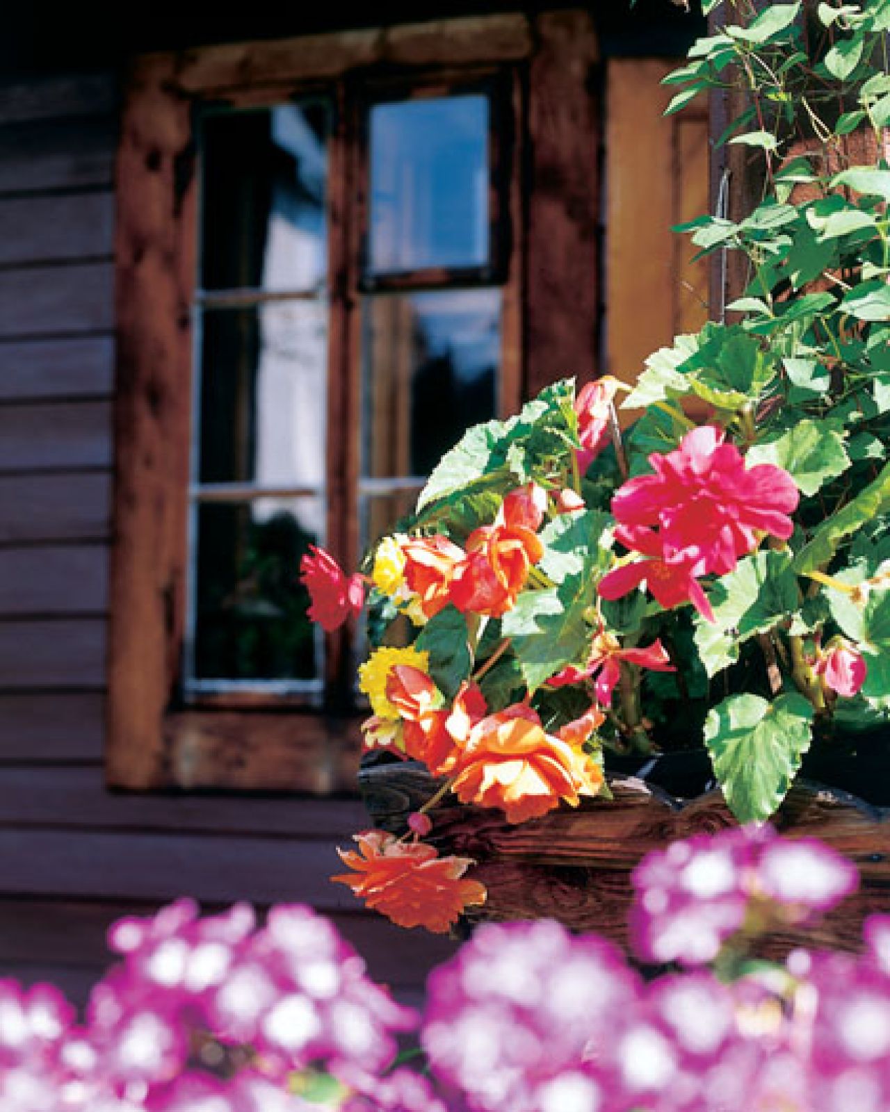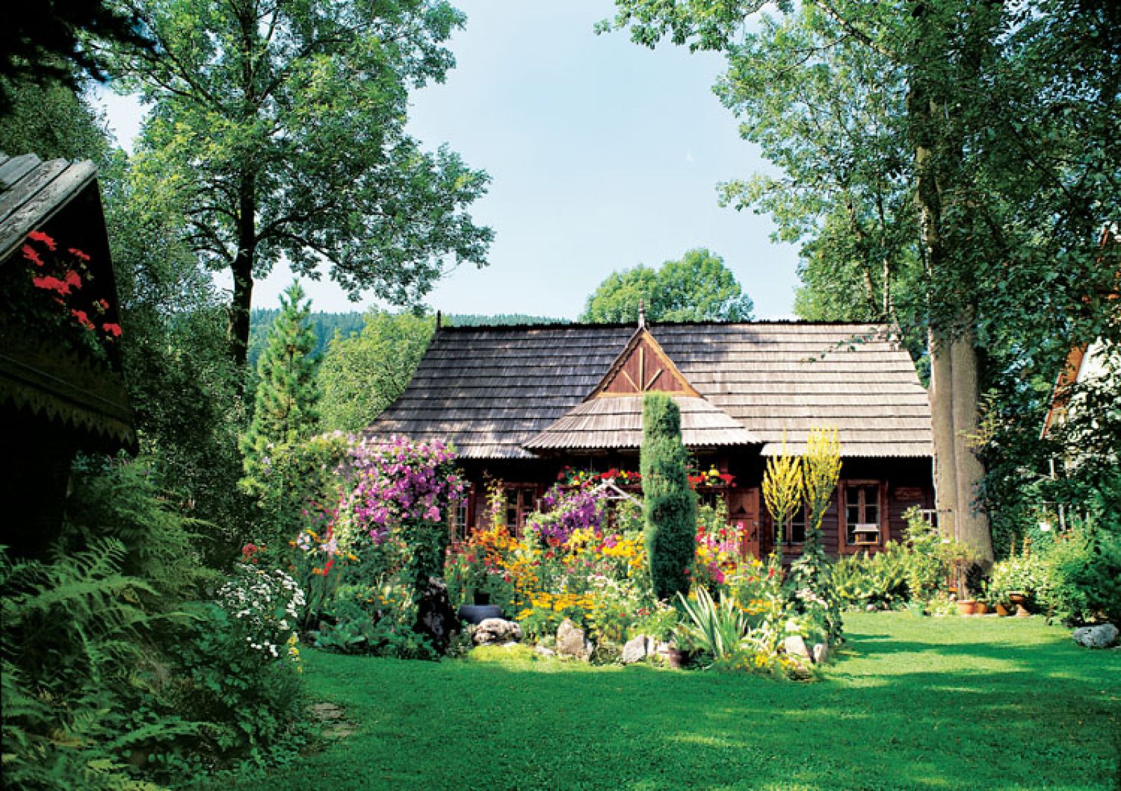 Pani Ewelina kocha wszystkie kwiaty, choć jakoś do róży nie ma serca. Woli te, które kwitną przez całe lato. Wzdłuż domu wystawia skrzynki z begoniami, niektóre kwiaty mają już po 30 lat i cebulki są wielkie jak pięść. Kapryśna, zakopiańska pogoda czasami wiosną przegania gospodynię po kilka razy ze skrzynkami, gdy trzeba je szybko chować przed śniegiem. Dlatego zrobiła namiot z folii. W nim robi także rozsady. Kwiaty mają nie tylko własny „dom”, ale i własną wodę. Za chałupą stoją beczki na deszczówkę do podlewania.