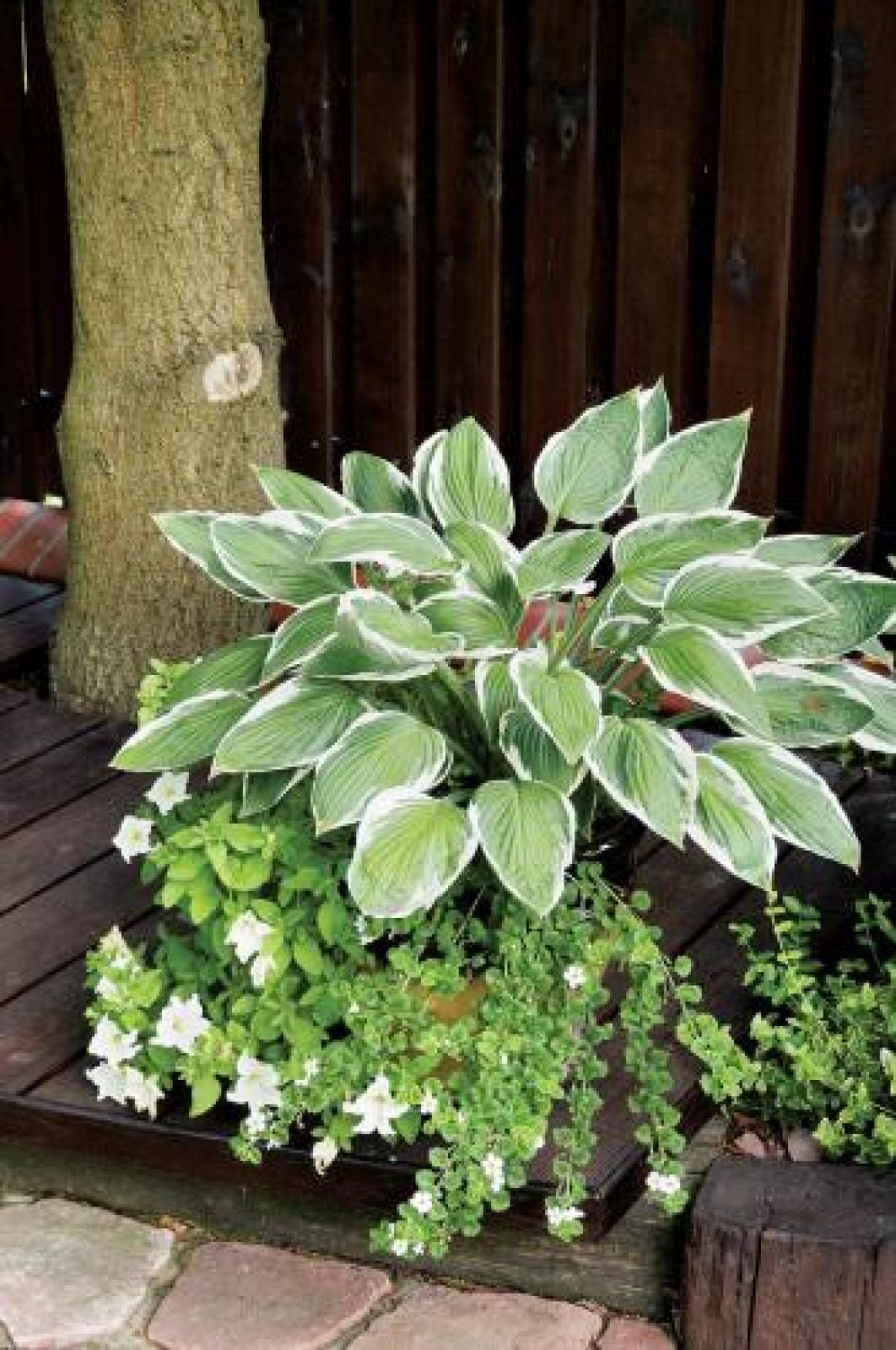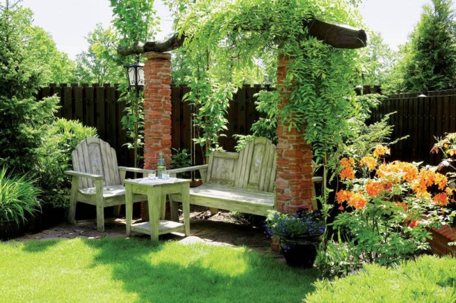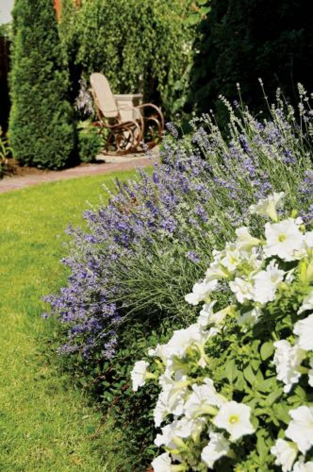 Oczkiem w głowie architektki od początku był młody dąb. Rósł w dolince, pół metra poniżej poziomu ogrodu, więc obawiała się, że jeśli wyrówna teren, drzewo uschnie. Dlatego zamiast zasypywać nierówność ziemią, ustawiła drewniany podest. Uratowała drzewo i przy okazji zyskała wymarzone miejsce na popołudniową sjestę. Jednak z czasem drewniany podest i dąb przegrały rywalizację z kuszącą jasnymi kolorami altanką, oplecioną bujnie rozrastającą się wisterią. Roślina jest podobno tak zaborcza, że potrafi wyrywać rynny ze ścian!