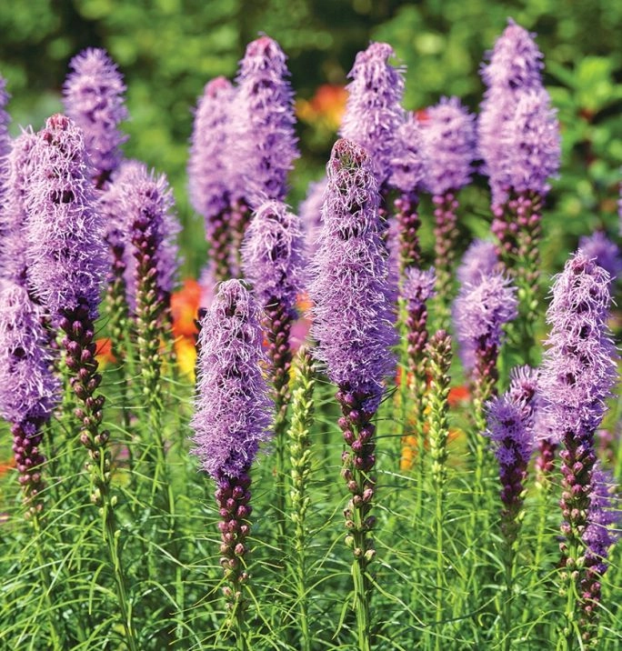 Liatra kołosowa – wyrasta – o dziwo – z cebulek. Najpierw pojawia się czupryna trawiastych liści, a później kwiatostan zakończony racą fioletowych puszków. Dobrze zimuje i nie wymaga wiele uwagi poza oczyszczeniem ze starych zeschniętych pędów na wiosnę. Ciekawie wygląda w towarzystwie jesiennych traw, kiedy jak kameleon udaje ich źdźbła. Sprawdza się na słonecznych stanowiskach i w ogrodach żwirowych – także przy żwirowych podjazdach. Po przekwitnięciu ścina się kwiatostany, zostawiając znów same liście.