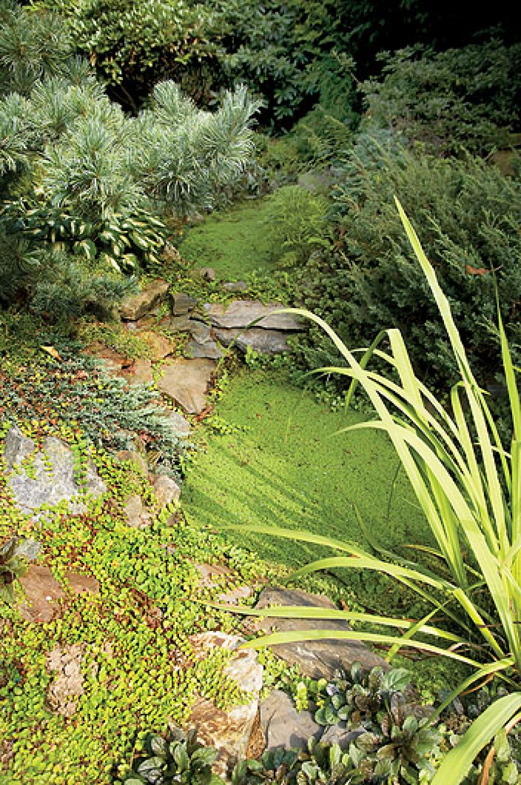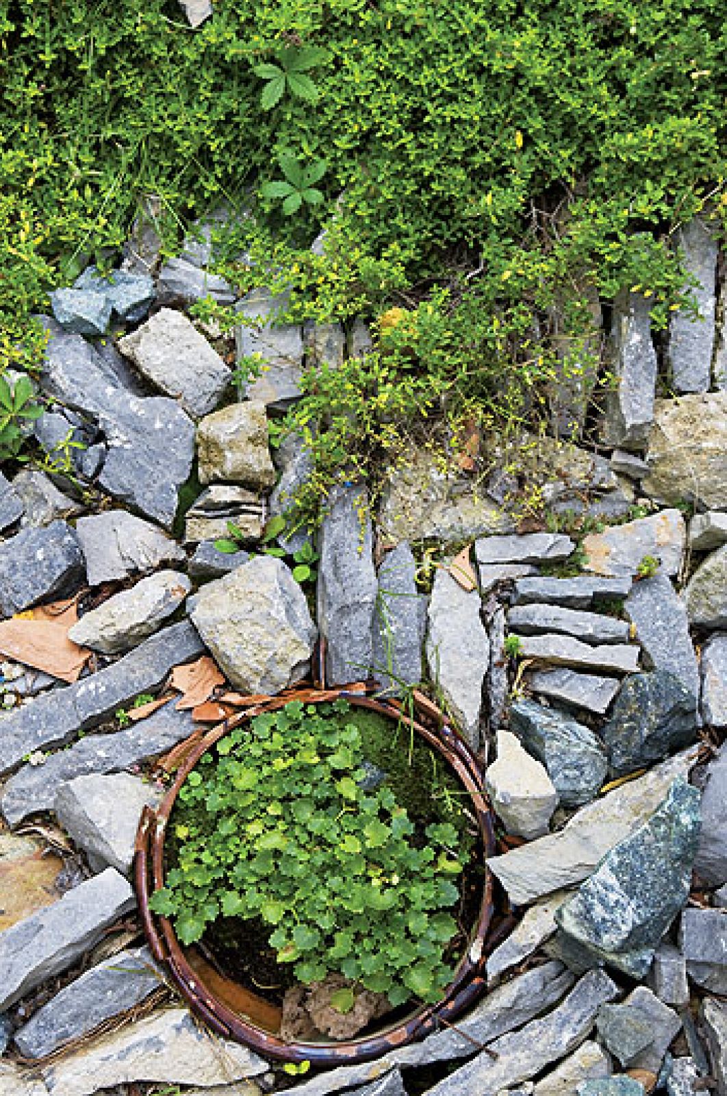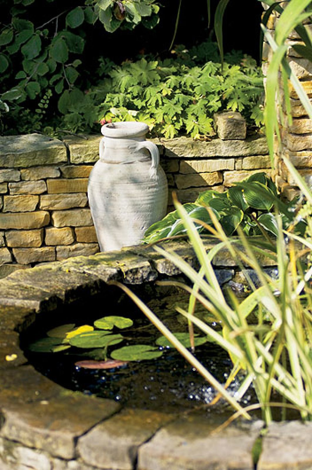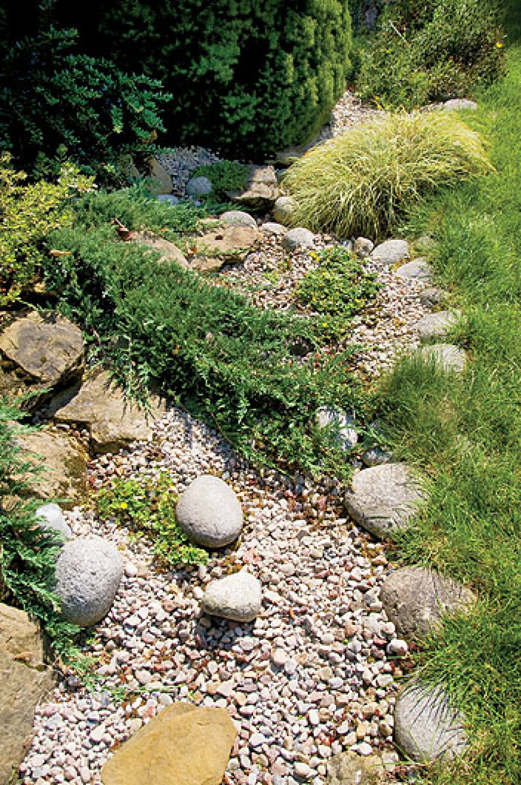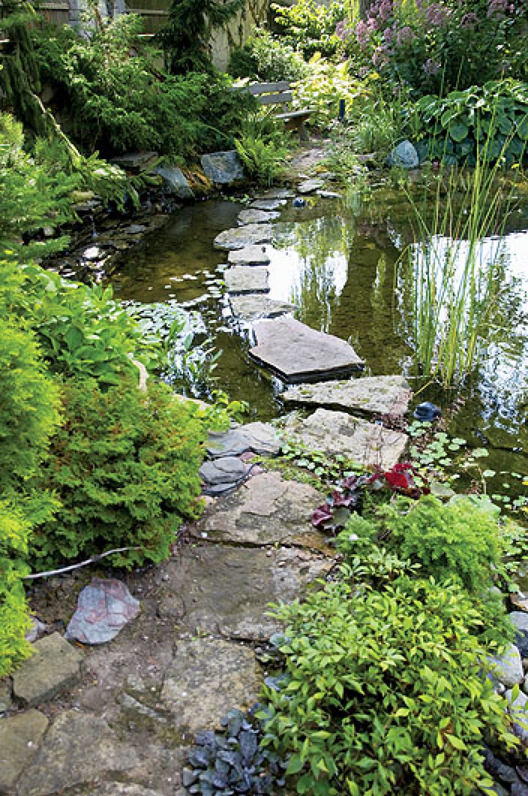 Pośród krzewów i kamieni wije się strumień, nad którym przerzucony jest kamienny mostek, jakby przeniesiony z Japonii. Trochę dalej spory odłamek skały ze skamieniałym amonitem. Obok niego Krzysztof ustawił ławeczkę – miejsce idealne, by usiąść z książką. A na wyłożonym żółtawym piaskowcem placyku ze ścienną fontanną poczujemy się jak na wakacjach w Grecji. W najniższym miejscu ogrodu jest staw. – Przerabiałem go trzy razy – opowiada ogrodnik. – To za mały, to za wąski. Teraz ma idealne proporcje, zgodne z zasadami feng shui. W wodzie – jak wierzą Chińczycy – gromadzi się życiodajna energia „chi”, przynosząca sukcesy i bogactwo.