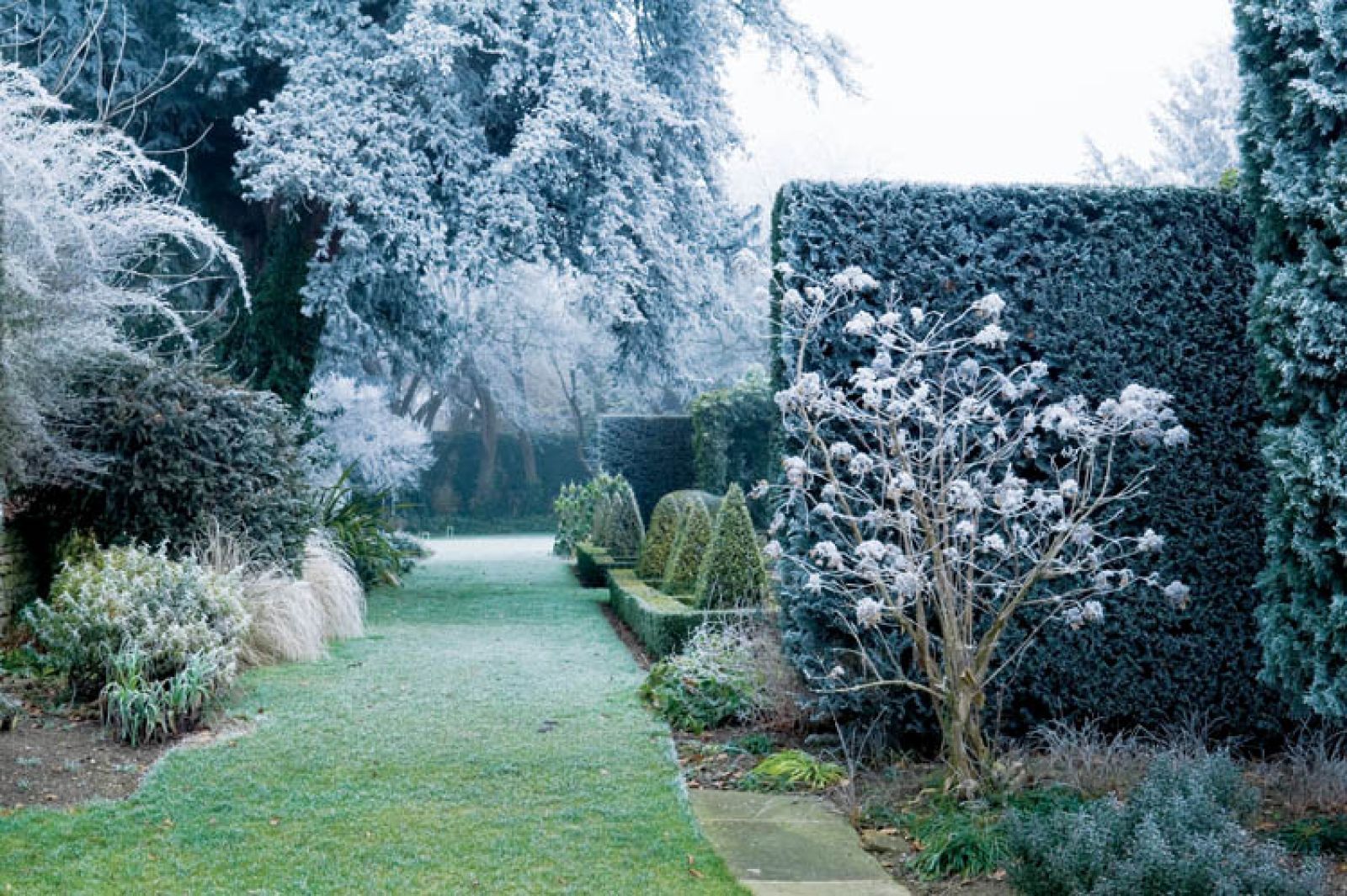Kilometry zmrożonych żywopłotów poskręcanych jak włoskie lody, przyciętych w stożki i kule.
