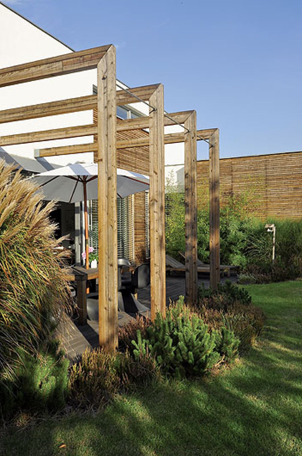 Kiedy architektka Ewa Stryczek-Smolakowska projektowała swój dom, już myślała o tym, co będzie dookoła. Nie chciała czekać kilka lat na zieleń za przeszkloną ścianą salonu – to po pierwsze. Po drugie – dla niej dom i ogród to całość. Stąd jeden styl dla tego, co wewnątrz i na zewnątrz. Wszystko proste, czyste i nowoczesne.