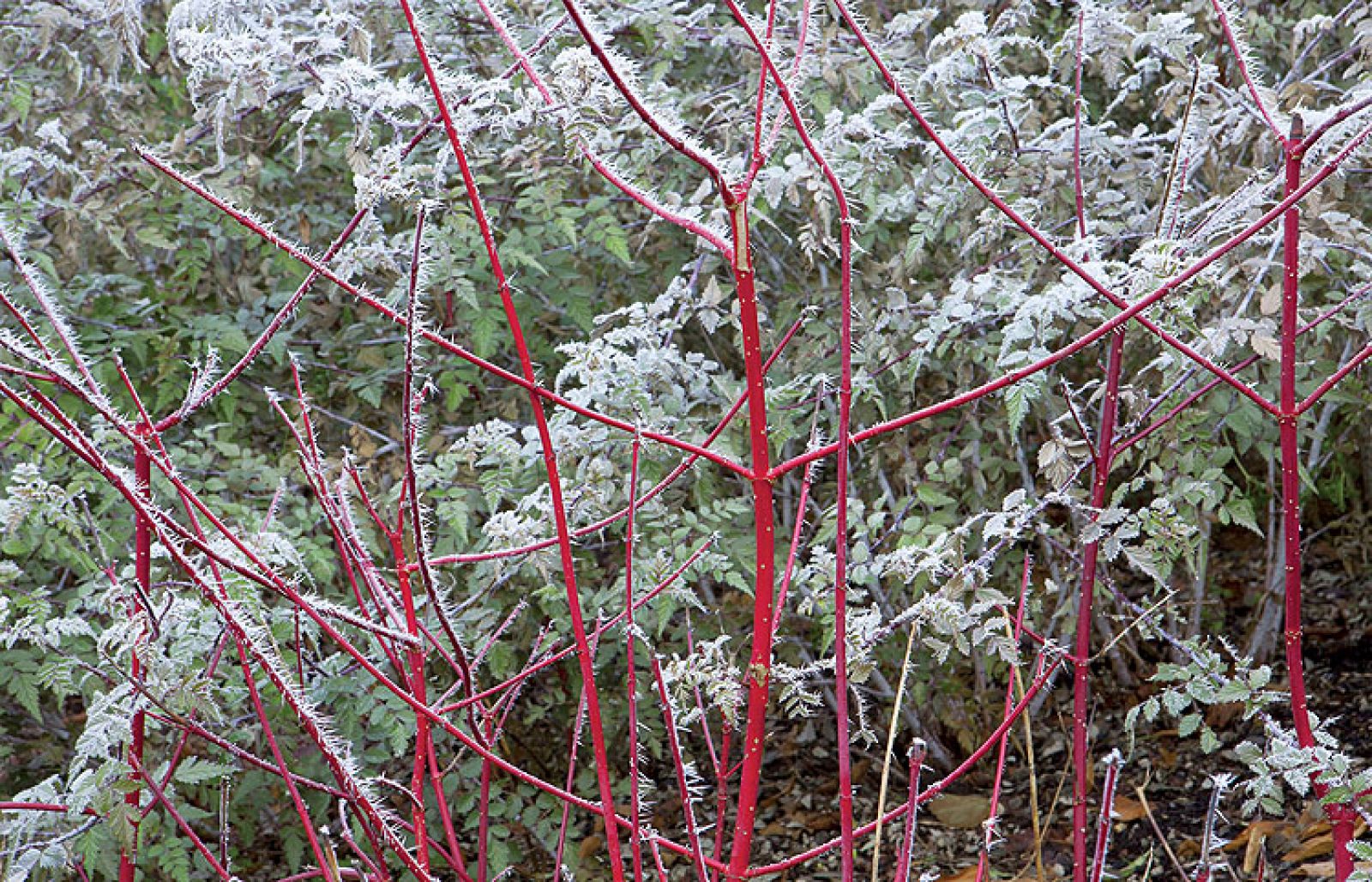 Ale to niejedyna atrakcja. W ogrodzie są rośliny, które mają piękną korę albo przebarwiające się gałęzie – tak, by nawet bez liści przyciągały wzrok. Na przykład brzozy himalajskie – jeśliby obok nich posadzić nasze polskie, wydawałoby się, że mają pnie nie białe, lecz brudno-szare. Jest też liczna rodzina dereni, różne rodzaje wierzb i klonów – pensylwański o korze przypominającej wężową skórę i palmowy z korą koralową. Niektóre z roślin, na przykład powojnik (Clematis cirrhosa var. balearica – okrywa ziemię jak dywan), kwitną późną zimą. W ogrodzie nieprawdopodobnie wtedy pachnie.