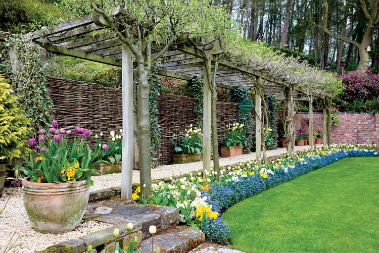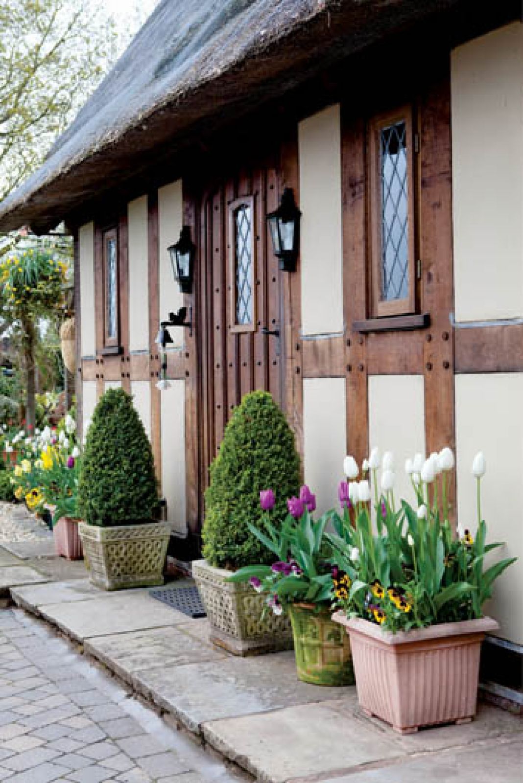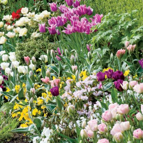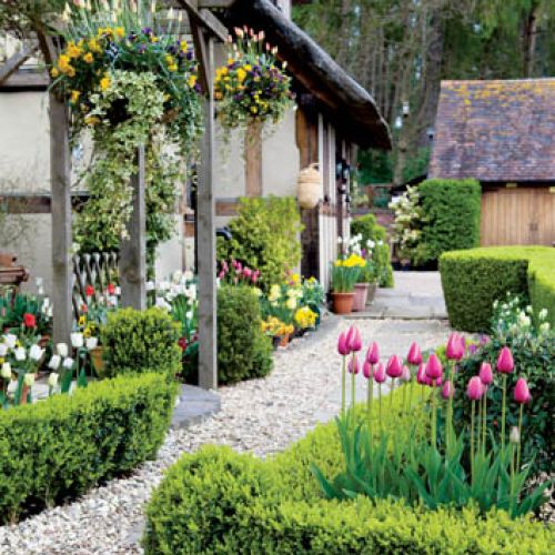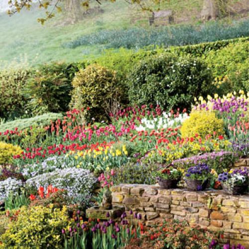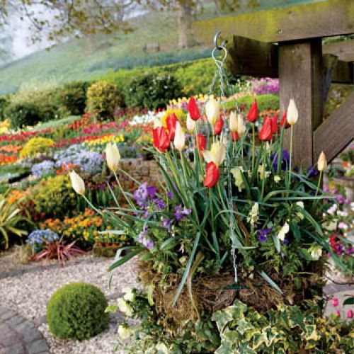 Tulipany w Little Larford rosną na grządkach i na pagórkach. Granice wyznaczają niewielkie żywopłoty. Żeby nie było monotonnie, gospodarze sadzą także inne rośliny: odrobinę fiołków, irysów, żonkili i bratków. Wkoło domu i przy ścieżkach zobaczymy też wypełnione kwiatami donice. Derek żartuje, że jego miłość do tulipanów jest tak wielka, że gdy brakuje miejsca w ogrodzie, zaczyna je sadzić gdzie popadnie. Przy tej ciężkiej pracy pomagają Walkerom ochotnicy – w ten sposób wszystko idzie o wiele sprawniej.