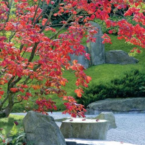 Kiedy spojrzymy na zachód (symbol jesieni), zobaczymy nieduże jezioro. Lustro wody odbija pięknie przebarwiające się jesienią drzewa – klony palmowe i japońskie, oczary, trzmieliny. We wschodniej części (symbol wiosny) zadumamy się nad kamiennym wodospadem i spotkamy drzewa kwitnące o tej porze roku – wiśnie, śliwy, pierisy i azalie. Do części południowej (symbol lata) wchodzimy przez kamienną bramę, by zobaczyć żwirowe morze, które spotyka się tu z wodą. I to jest już ogród zen. Te najdoskonalsze są projektowane przez... buddyjskich kapłanów.