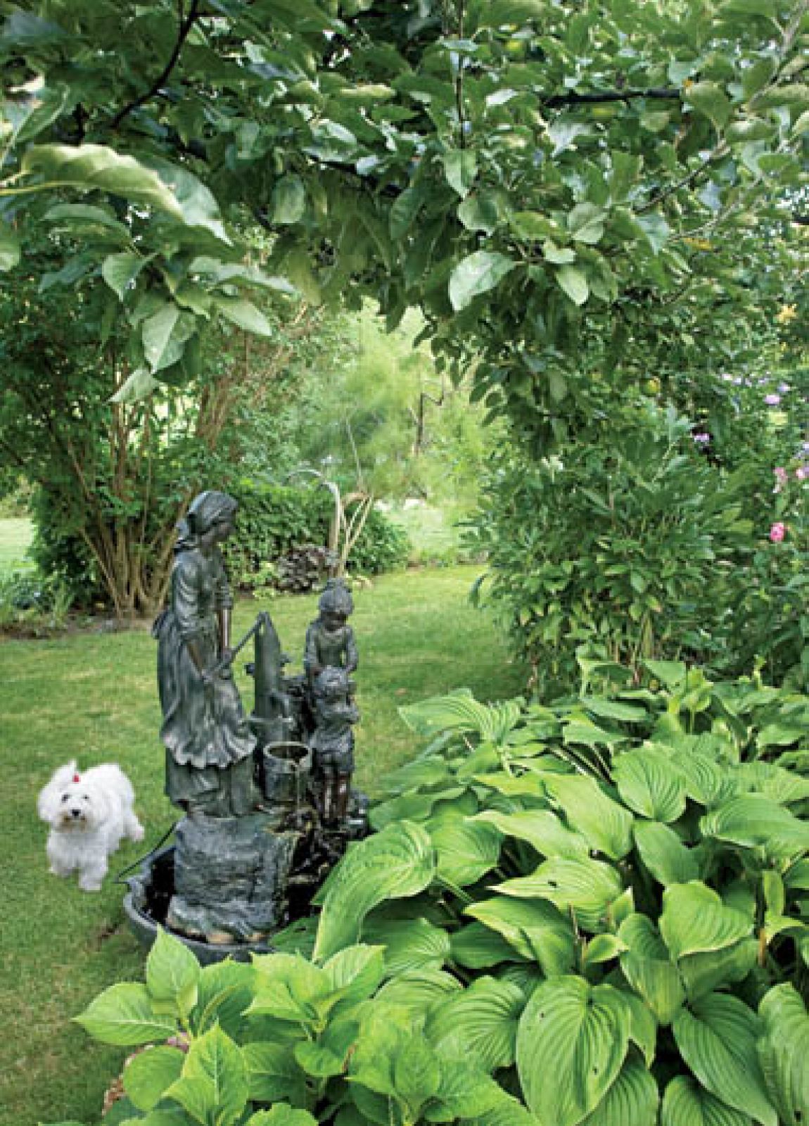 To przyjaciele z internetu podpowiedzieli, że mała architektura doda ogrodowi uroku. Wkrótce na ścianie domku ogrodnika pojawił się stary zlew, a pod wiekową jabłonią rzeźba-fontanna. Ciekawe, co w tym sezonie polecą jej znajomi.