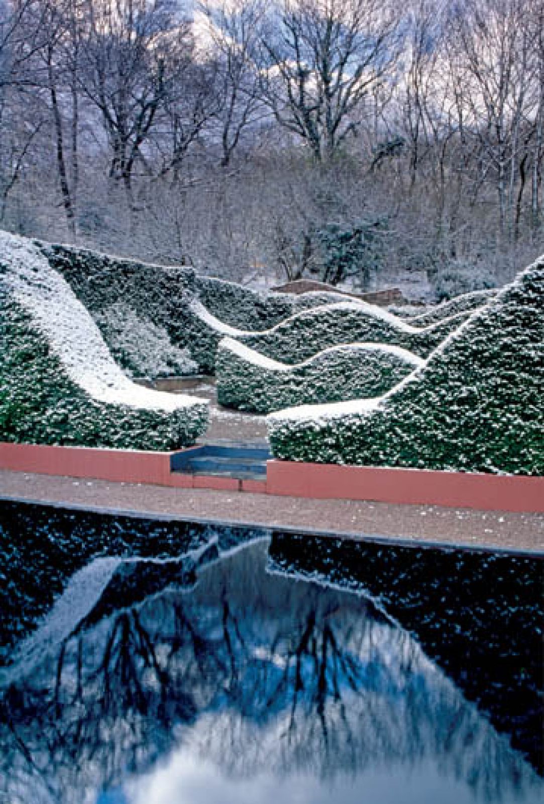 W głębi pojawiają się geometryczne formy wycięte w żywopłocie. Lekki mróz sprawia, że stają się bardziej wyraziste. Gdy tylko błyśnie słońce, rozpoczyna się gra pomiędzy srebrzystym światłem i cieniem. Teatralnego powabu dodaje czarna tafla wody. Anne i Charles co roku niecierpliwie czekają na spektakl, który reżyseruje dla nich zima.