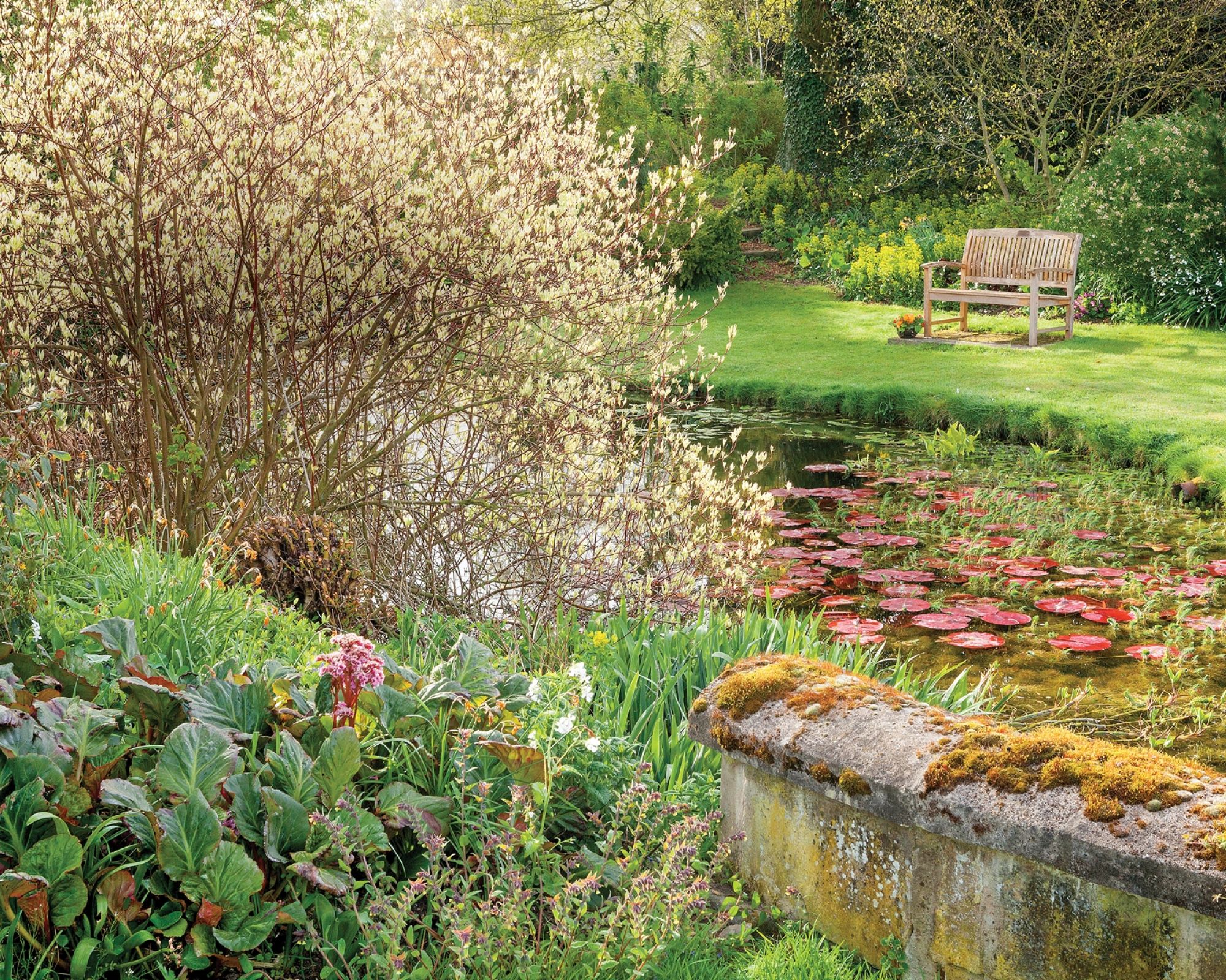 Przedwiośnie wybucha nad stawem w angielskim ogrodzie, wśród złocistych wilczomleczy, kaskad białych szczodrzeńców i pachnących pomarańczami czojsi.