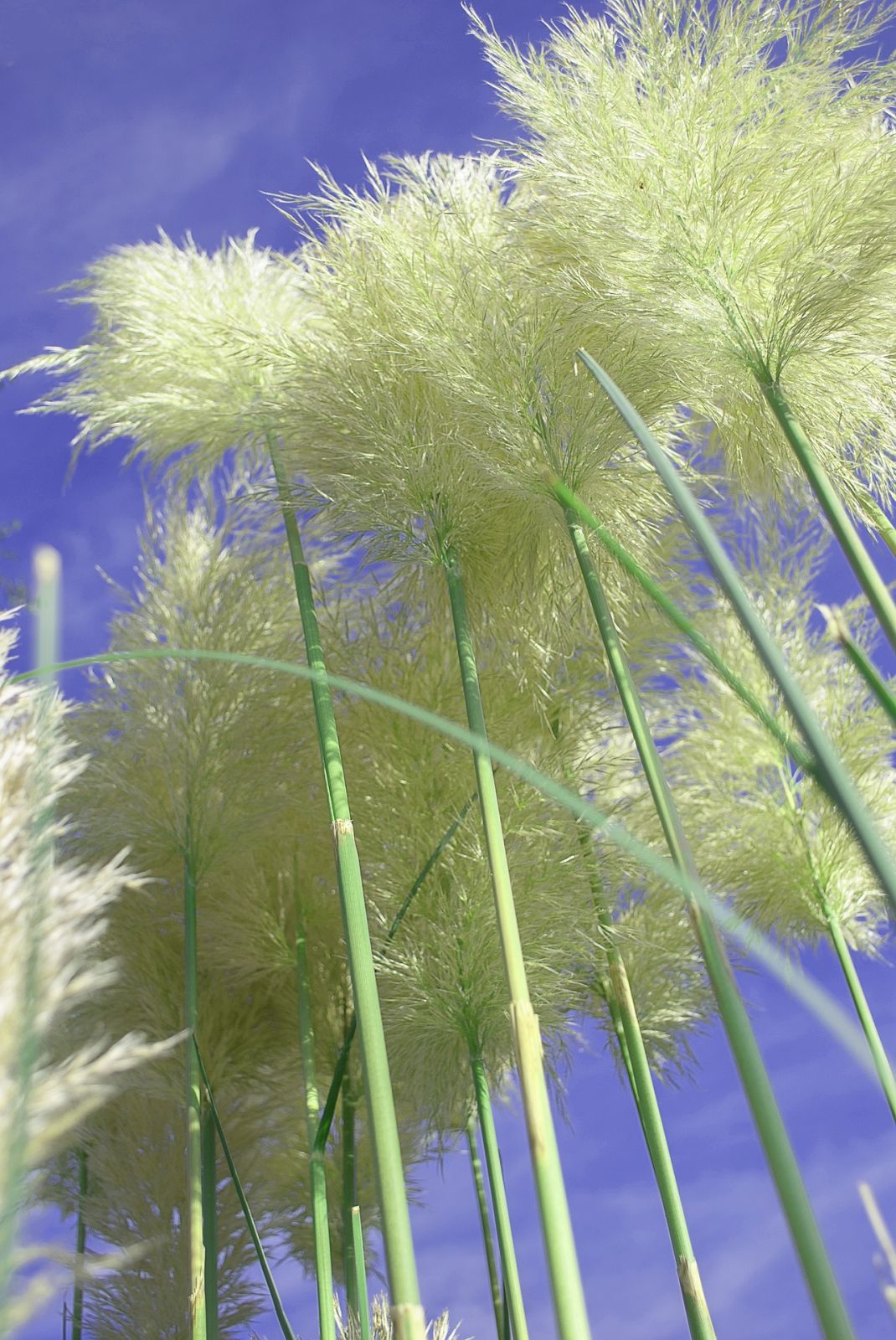 Do najpopularniejszych wysokich traw ozdobnych należy trawa pampasowa. Różne odmiany rosną od 1 do nawet 3 metrów wysokości. Występuje w kolorze białym i różowym. Jej cechą charakterystyczną są duże, puszyste wiechy. Bardzo podobny, lecz w mniejszych rozmiarze i kwiatostanie jest miskant chiński. Występuje tylko w srebrnej odmianie.