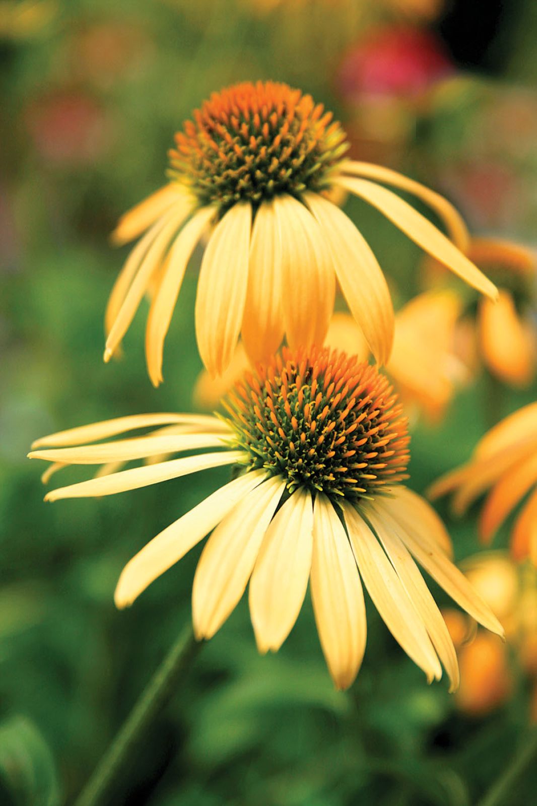 Słowo „echinacea” pochodzi od greckiego „echinos”, co znaczy „jeż”. Roślina pochodzi ze Stanów Zjednoczonych, gdzie rośnie na suchych preriach i wzgórzach. Jestem wielką fanką jeżówek, zwłaszcza tych w tradycyjnym, purpurowym i ciemnoróżowym kolorze. Mają w sobie coś ujmującego, a jednocześnie szlachetnego. Ich koszyczki kwiatowe dumnie jeżą się do słońca. I to przez całe lato.