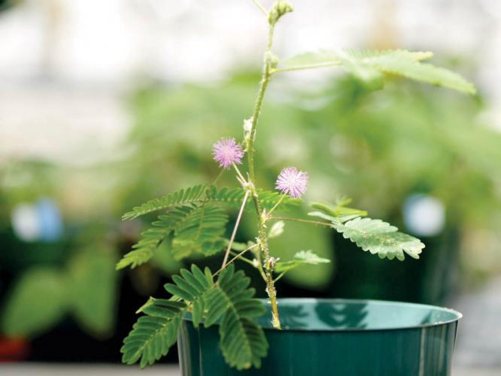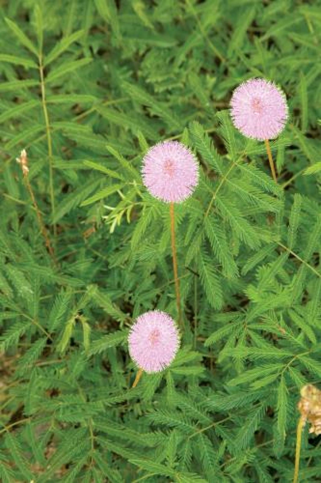 Rzeczywiście, mimoza wydaje się uosobieniem delikatności – ma drobne pierzaste listki, lilioworóżowe kulki kwiatów kołyszące się na wątłych łodygach. Wygląd pasuje do charakteru jak ulał, bo istotka to nader bojaźliwa. Wystarczy lekkie dotknięcie, a ona już składa pierzaste listki. Często zachodzi reakcja łańcuchowa – jedne liście dają sygnał kolejnym, łodygi wiotczeją i cała roślina kuli się w okamgnieniu. Ale wystarczy pół godziny i znów „stroszy piórka”. Na dłużej zasypia o zmroku, by znów się zbudzić o świcie.