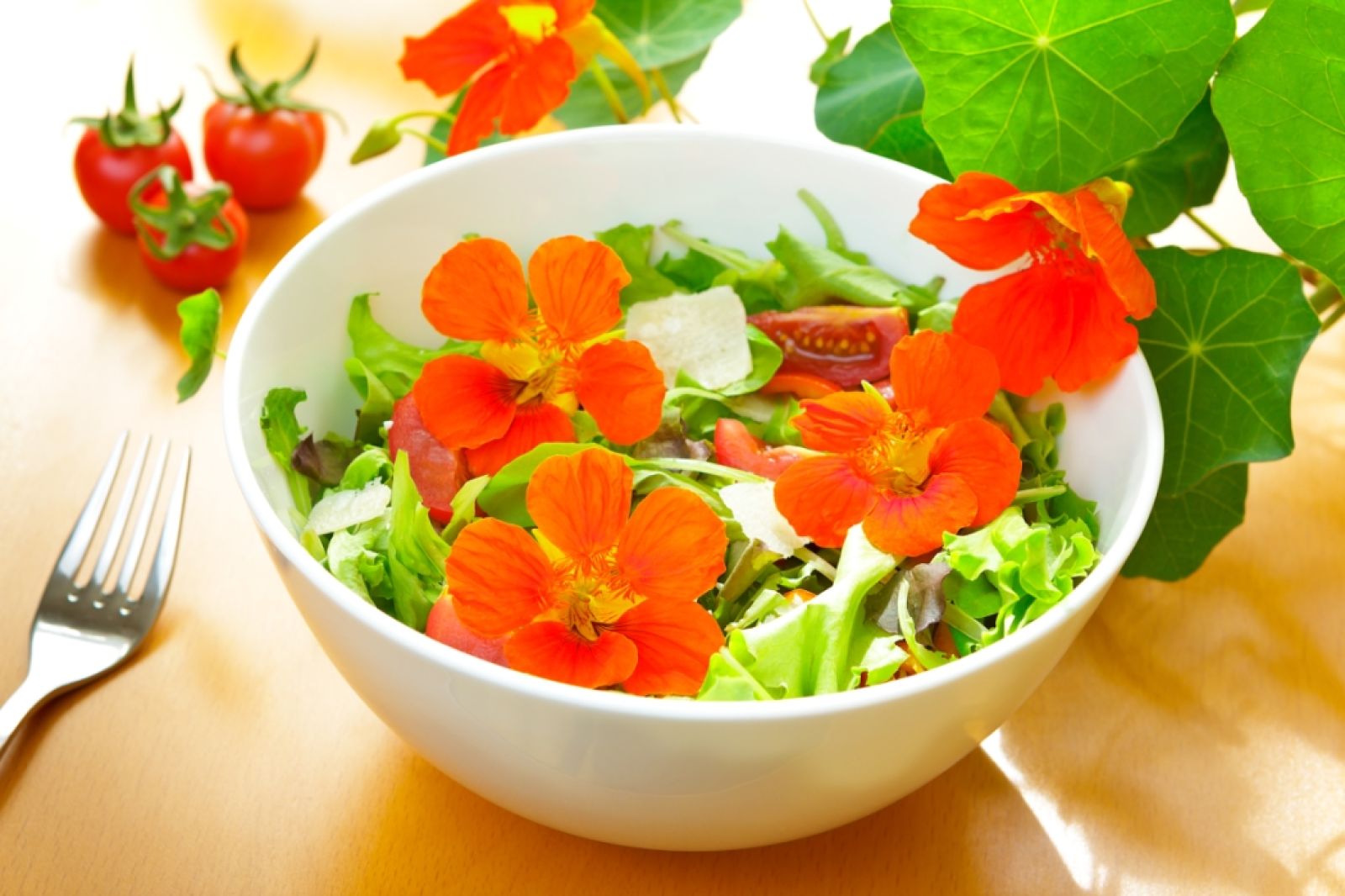 RoślinyNie ma szczególnych wymagań co do gleby, kwitnie całe lato, cała jest też jadalna. Jedyny minus nasturcji – nie lubi naszej zimy.