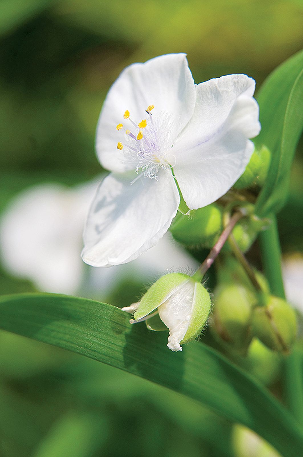 Tymczasem trzykrotka Andersona wygląda jak trawiasta kępa, wysoka do 120 cm, z długimi zielonymi liśćmi (można spotkać też odmiany jasnożółte, niebieskozielone, a nawet purpurowe). Dopiero w czerwcu wypuszcza pierwsze kwiaty o trzech delikatnych płatkach i żółtych wystających pręcikach. Każdy kwiat żyje zaledwie dzień. Otwiera się wczesnym rankiem, wabiąc pszczoły i motyle, a wieczorem zamiera. Do następnego poranka roztopi się jak płatek śniegu, zamieniając w półpłynną galaretkę. Ale jego miejsce zajmuje kolejny kwiatek. I tak aż do września. Chociaż trzykrotki Andersona nie są tak oszałamiające jak rudbekie czy floksy, rozweselają rabaty przez całe lato. Sprawdzą się jako tło dla bardziej efektownych sąsiadek.