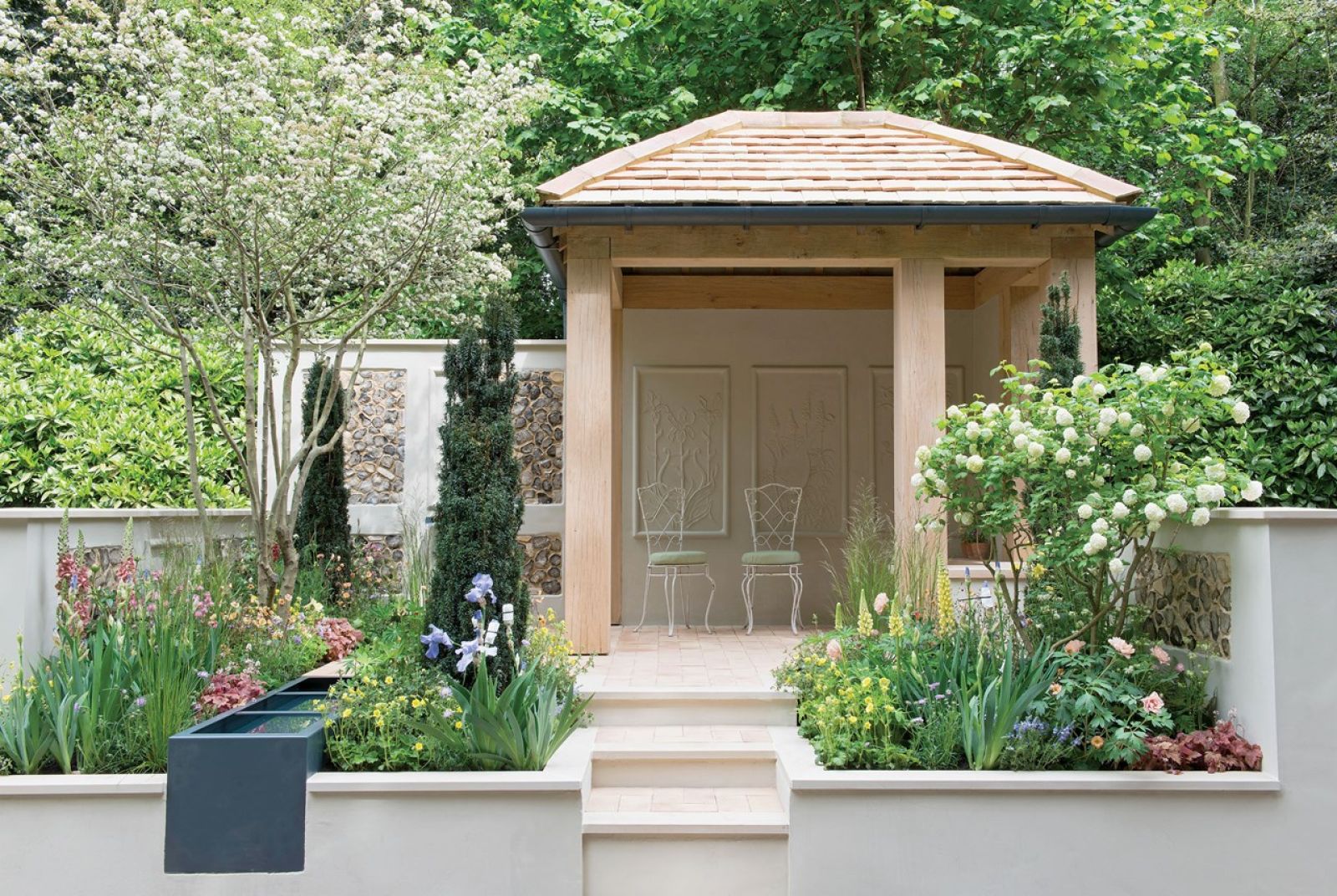 Altanki, pergole, pawilony ukryte w zieleni, ale urządzone na wzór domowych saloników. Mamy w nich odpoczywać jak na wymarzonych wakacjach. Sami lub w towarzystwie przyjaciół. W pokojach pod chmurką ustawiamy wygodne sofy, fotele, stoły i stoliki. Budujemy kominki. Ściany zdobimy sztukateriami, wieszamy obrazy, zdjęcia, ustawiamy rzeźby. Ma być przytulnie – tak bardzo, żeby nie chciało się wracać do domu.