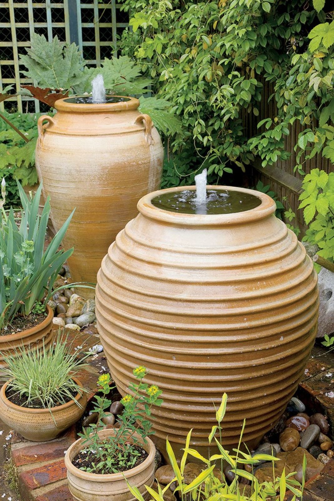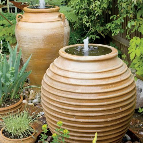 Nie musimy od razu urządzać jeziorka czy stawu. Ważne, żeby coś nam PLuskało i SZUMiało, a do tego wystarczą ogromne gliniane dzbany z minifontannami, misy z wodą, korytko albo malutkie i płytkie oczka. Co ciekawe, nawet w nich można posadzić nenufary miniaturki – potrzeba im tylko dużo słońca i 30 cm wody.