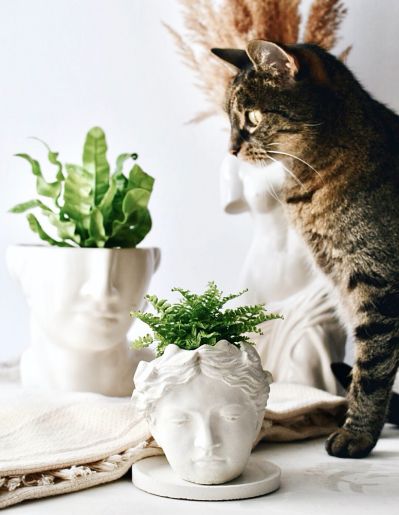 Jeśli stawiasz w salonie lub kuchni jedną donicę, weź pod uwagę fakt, że będzie przyciągała wzrok gości. Wybierz więc taką, która ma ciekawą formę, ładne wzory lub elegancką podstawę. Ale z doniczek możesz tworzyć też ciekawe kompozycje – postaw obok siebie kilka mniejszych i większych w tym samym kolorze, zestaw osłonki z tym samym wzorem, ale w różnych kształtach albo dopasuj do siebie dwa odcienie, np. zgrupuj szare obok zielonych.