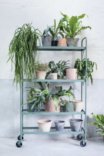 Regał-kwietnik na kółkach to kolejny sposób na aranżację zielonego kącika w mieszkaniu. Bez problemu utrzyma ciężkie, duże donice. Kolorowe, metalowe pojemniki umożliwią zaś stworzenie ładniej roślinnej dekoracji w salonie, sypialni albo na balkonie.