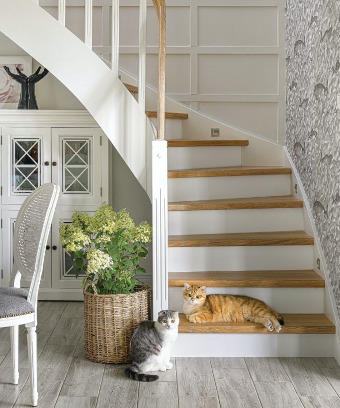 Innym ciekawym pomysłem na dekorację do domu jest wiklinowy kosz z krzewem hortensji. Postawiony obok schodów doda wnętrzom wakacyjnej lekkości.