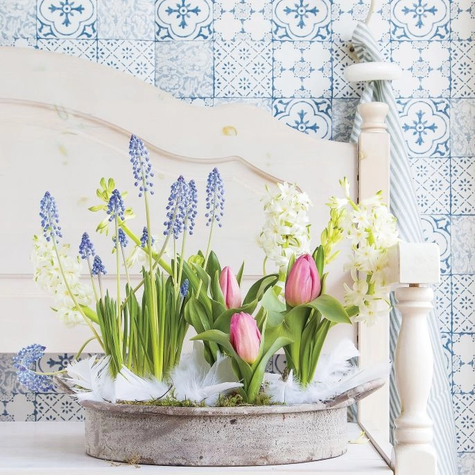 Tulipany to kwiaty, które sprawdzą się zawsze i wszędzie. Wyglądają pięknie i w oklejonej ozdobnym papierem puszce, i w eleganckiej chińskiej donicy. Zamiast klasycznego wazonu weź stary koszyk lub cynową formę do ciasta – a będzie bardziej rustykalnie i romantycznie.