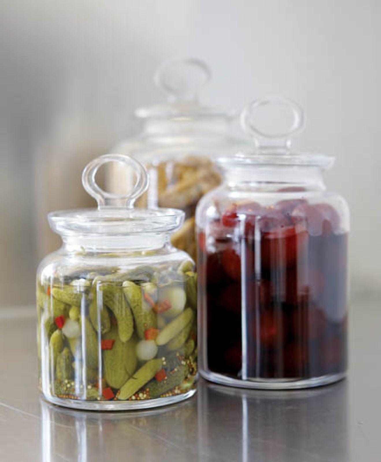 Zapasy mogą też zdobić: kolorowe ziarna fasoli w niskich szklanych słojach, czosnek i cebula w metalowych pojemnikach. Nawet zawekowane przetwory wystawiamy teraz na półki. Producenci prześcigają się w dizajnerskich słojach: słynna marka Alessi zdobyła serca Włoszek pojemnikiem Gianni z kryształowego szkła – do pokrywki uczepiony jest zabawny ludzik, ów Gianni właśnie.
